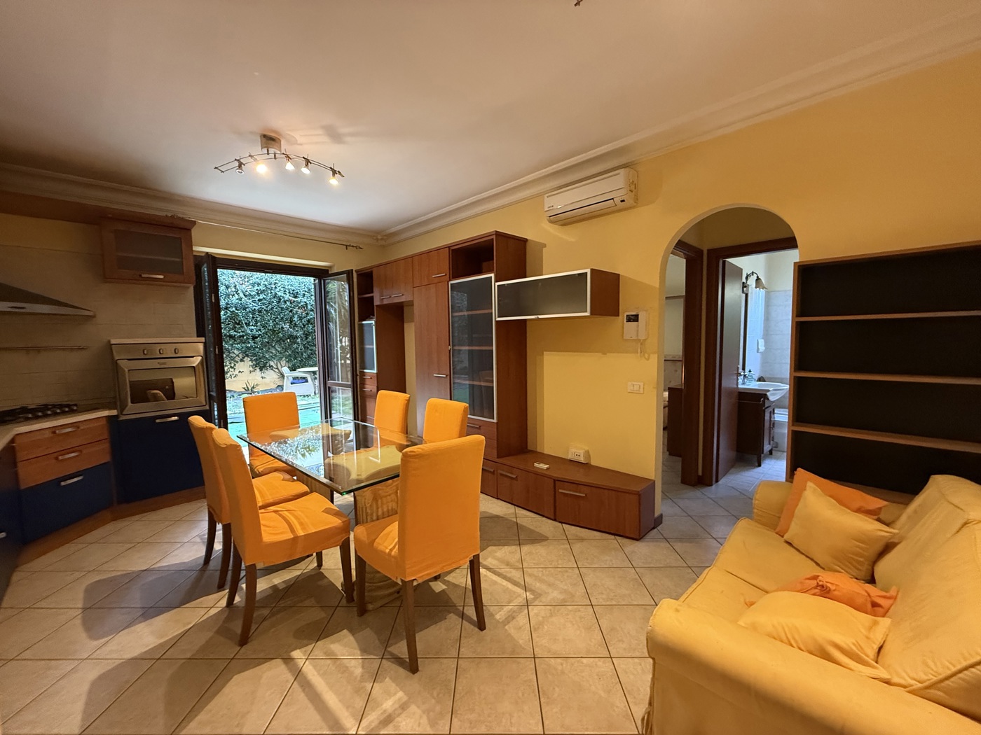 L'appartamento in buono stato e presenta caratteristiche moderne come il portone blindato, infissi in PVC e un sistema di aria condizionata caldo/freddo.