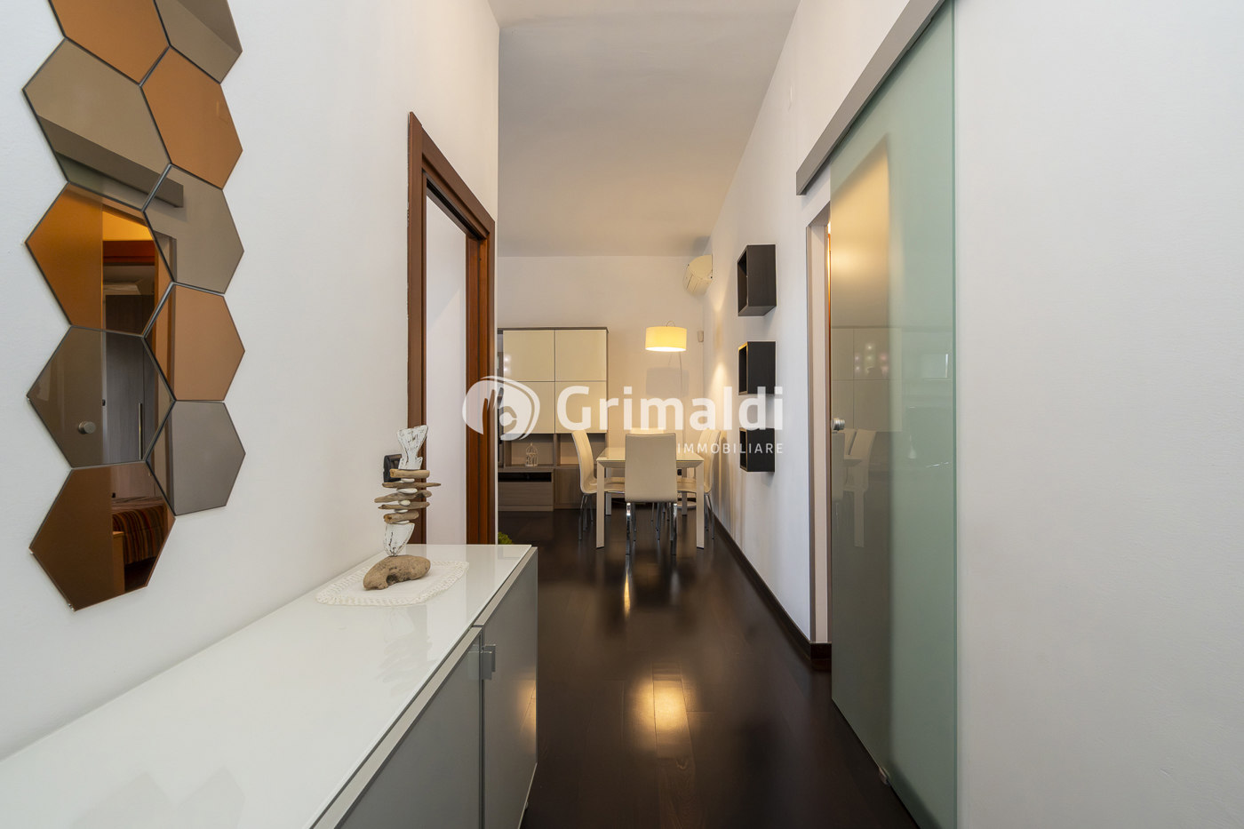 Lingresso conduce al luminoso soggiorno con accesso al balcone esposto a sud e alla cucina abitabile, anchessa dotata di balcone.