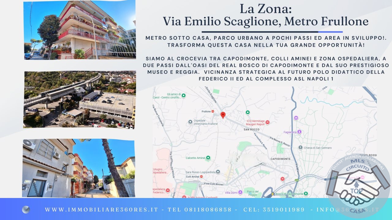 Dimentica il traffico per andare in centro.\n\n and #128739; and #65039; PARTENZE VELOCI: Lo svincolo dell'Asse Mediano è a soli 3 minuti in auto. Perfetto per chi lavora fuori città ma anche per spostamenti personali e gite fuori porta.\n\n and #127795; RESPIRA CAPODIMONTE: Il maestoso Real Bosco di Capodimonte è a 1,5 km (circa 5 minuti in auto). Il tuo parco giochi naturale per i bambini e per il tuo jogging.\n\n and #127973; TRANQUILLITÀ SANITARIA e POLO LAVORATIVO: la nuova ASL Napoli 1 Centro è vicinissima (circa 5 minuti in auto).\n\nLa posizione è un perfetto baricentro tra Capodimonte, Colli Aminei e la Zona Ospedaliera, garantendo vivibilità ed accessibilità a scuole, servizi e ai poli di sviluppo ed aggregazione.\n\nIl Prezzo dell'Opportunità è la configurazione stessa di questo appartamento che se da un lato è senza ascensore dall'altro vuol dire risparmio sulle spese condominiali, se da un lato è con sole finestre, dall'altro vuol dire poter sfruttare al massimo tutti i mq utili interni ed il tutto con un notevole vantaggio di prezzo dovuto a tali caratteristiche così da poter sfruttare al meglio l'opportunità di ristrutturarlo secondo le proprie esigenze e personalizzando ogni dettaglio!\n\nSiete proprio sicuri di volervi lasciar sfuggire un' occasione UNICA per avere un immobile di queste dimensioni in parco con posto auto ad un prezzo accessibile?\n\nATTEZIONE: Visita l'immobile solo su Prenotazione:\nPartecipa al nostro evento esclusivo Open House sabato 06 Dicembre 2025, dalle 10:00 alle 11:00. L'accesso è riservato e su prenotazione.