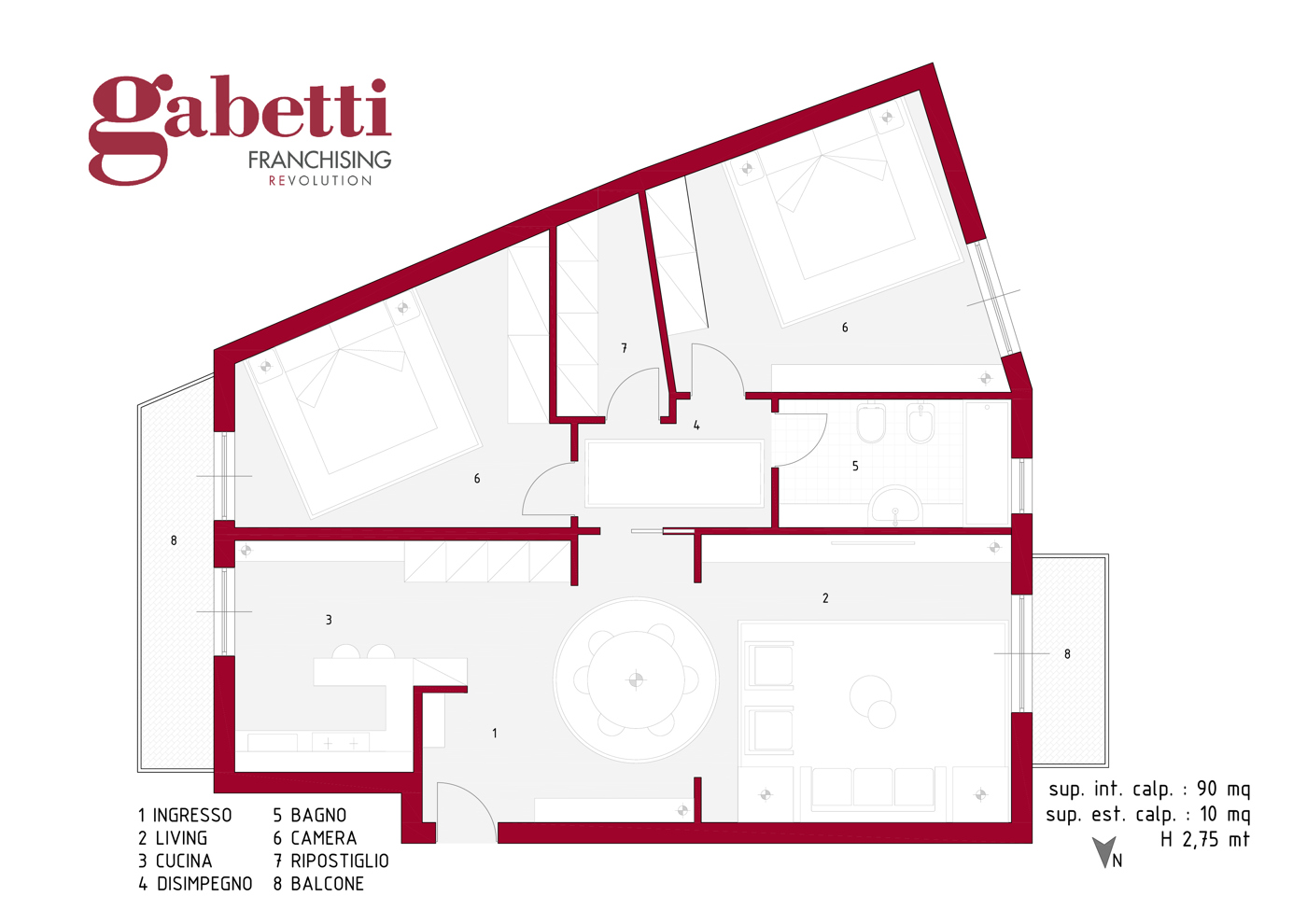 Limmobile, libero e luminoso, offre una superficie di 90 mq, con ulteriori 10 mq di spazi esterni.