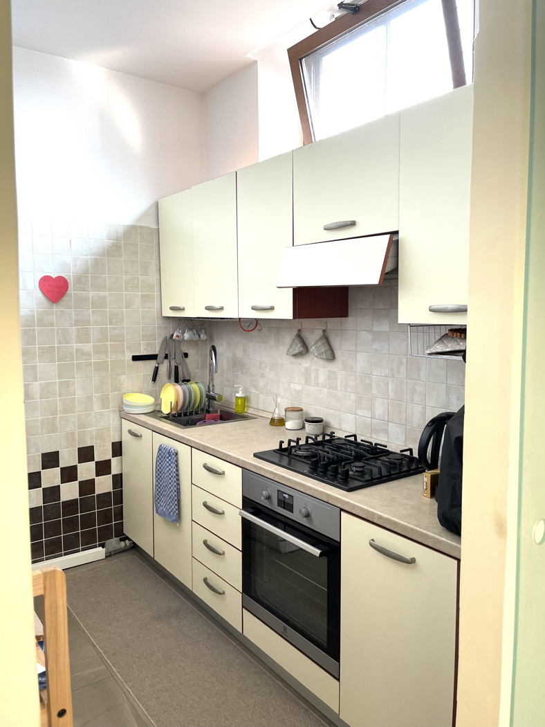 Tinello con cucinino, perfetto per i momenti conviviali.