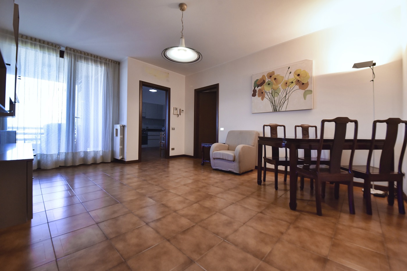 Ingresso sul comodo soggiorno/pranzo con accesso diretto al terrazzo coperto con vista panoramica lato ovest, cucina abitabile anch'essa munita di accesso al terrazzo, doppio servizio igienico e n. 2 comode camere da letto.