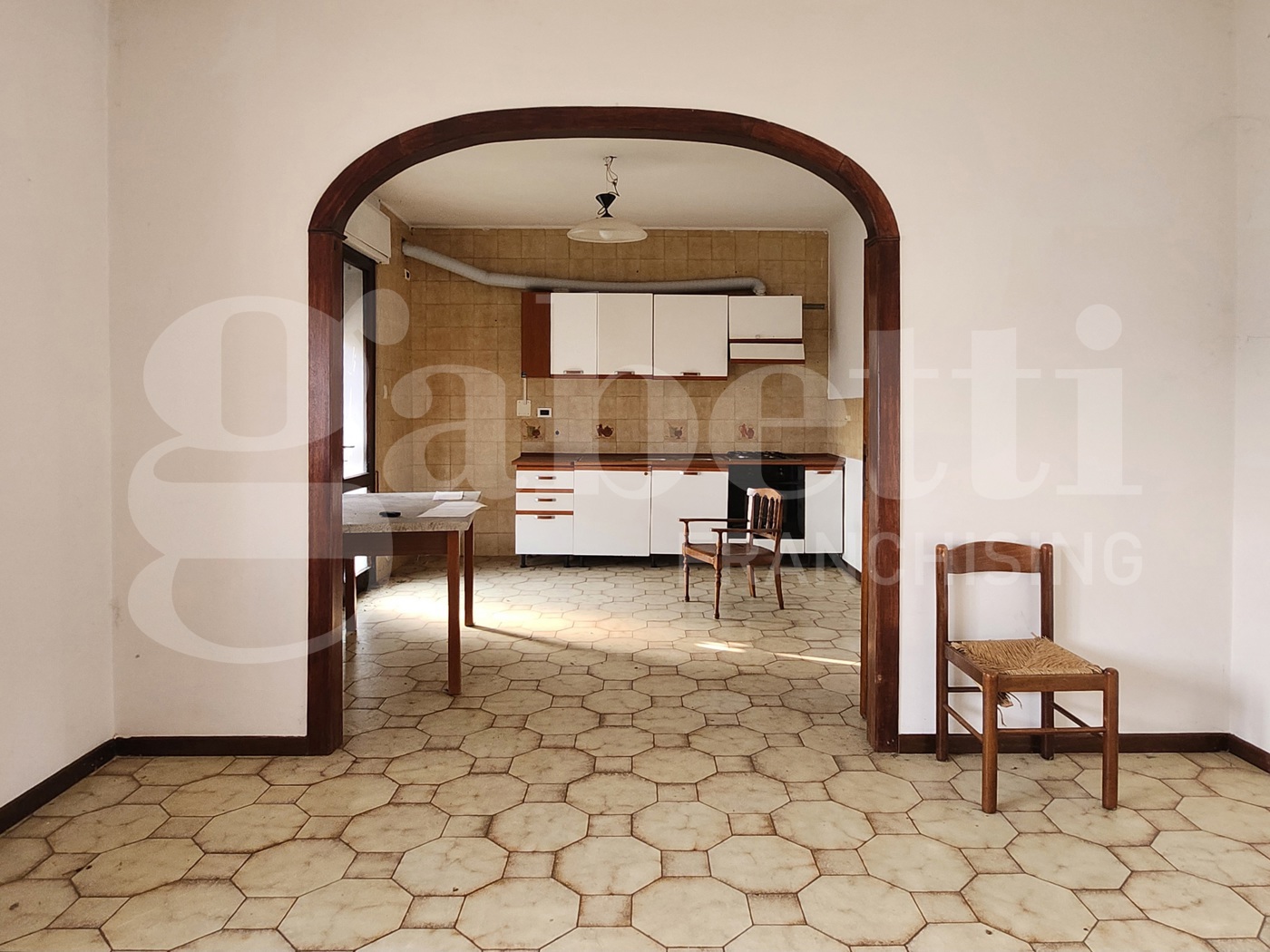 L'immobile degli anni '60, che necessita di diversi lavori di ristrutturazione, si compone di: veranda, un ingresso spazioso con comodo ripostiglio, soggiorno con angolo cottura dalle dimensioni generose con uscita sul poggiolo, un corridoio che conduce alla zona notte, composto da una camera matrimoniale con relativa terrazza e un bagno finestrato.