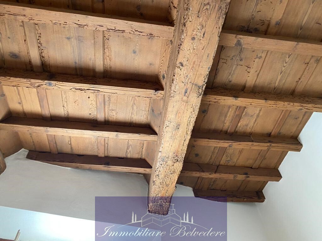 L'immobile si presenta in buone condizioni generali, gode di doppia esposizione con piacevoli affacci ed è dotato di pavimenti in cotto, pavimenti in parquet e soffitto a cassettoni con travi a vista.