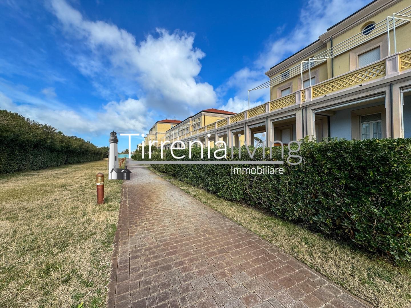 ***.*******.** C-650 - CALAMBRONE - NOSTRA ESCLUSIVA - Nel bellissimo contesto delle ex-colonie con accesso diretto alla spiaggia e bellissima e curata area condominiale, vicino a tutti i servizi della nuova piazza di Eliopoli, proponiamo appartamento in ottime condizioni di manutenzione posto al piano rialzato disposto su due livelli, con ingresso da giardino e terrazza in proprietà esclusiva composto da: ingresso in luminoso ed ampio tinello con zona cottura, disimpegno, bagno con vasca e camera matrimoniale; tramite scala, si accede al piano soppalco dove troviamo una ulteriore camera.