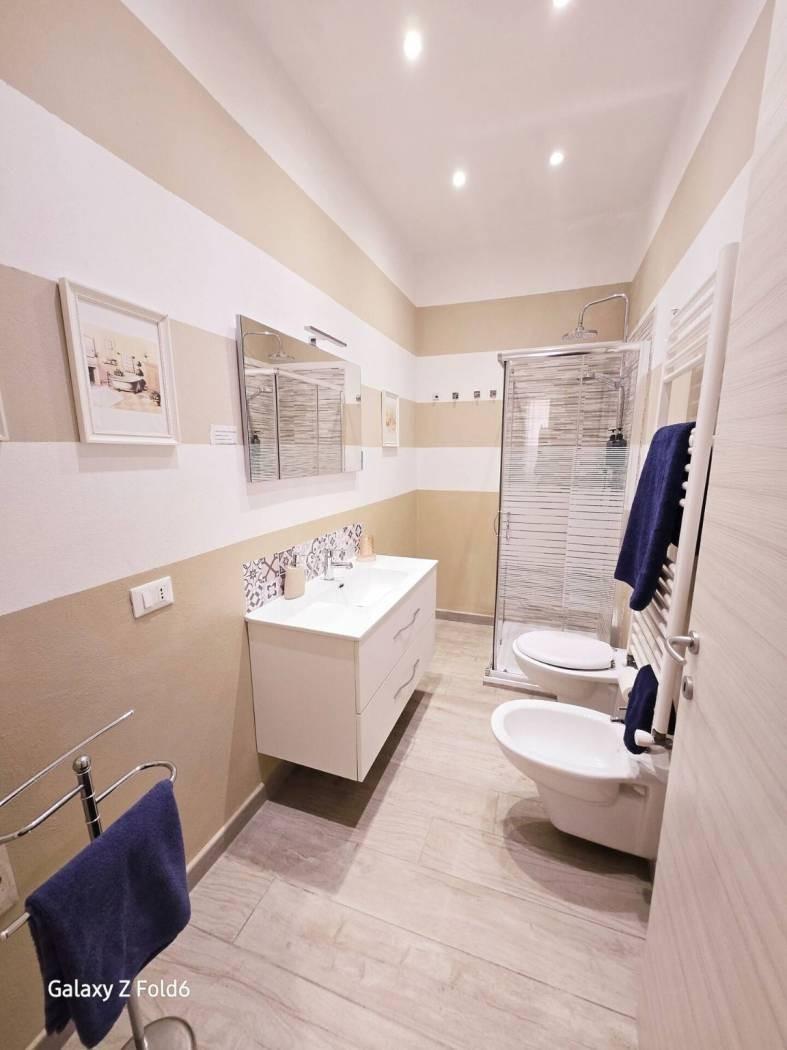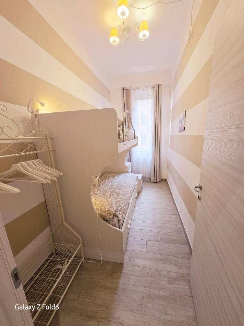 L'appartamento è composto da tre locali, ampio soggiorno con angolo cottura affacciato sul balcone, di cui una camera da letto matrimoniale, cameretta, tutte le stanze con affacio sul comodo balcone, e un bagno con doccia . Il tutto completamente ristrutturato con impianti a norma, e dotato di impianto di condizionamento in ogni stanza.