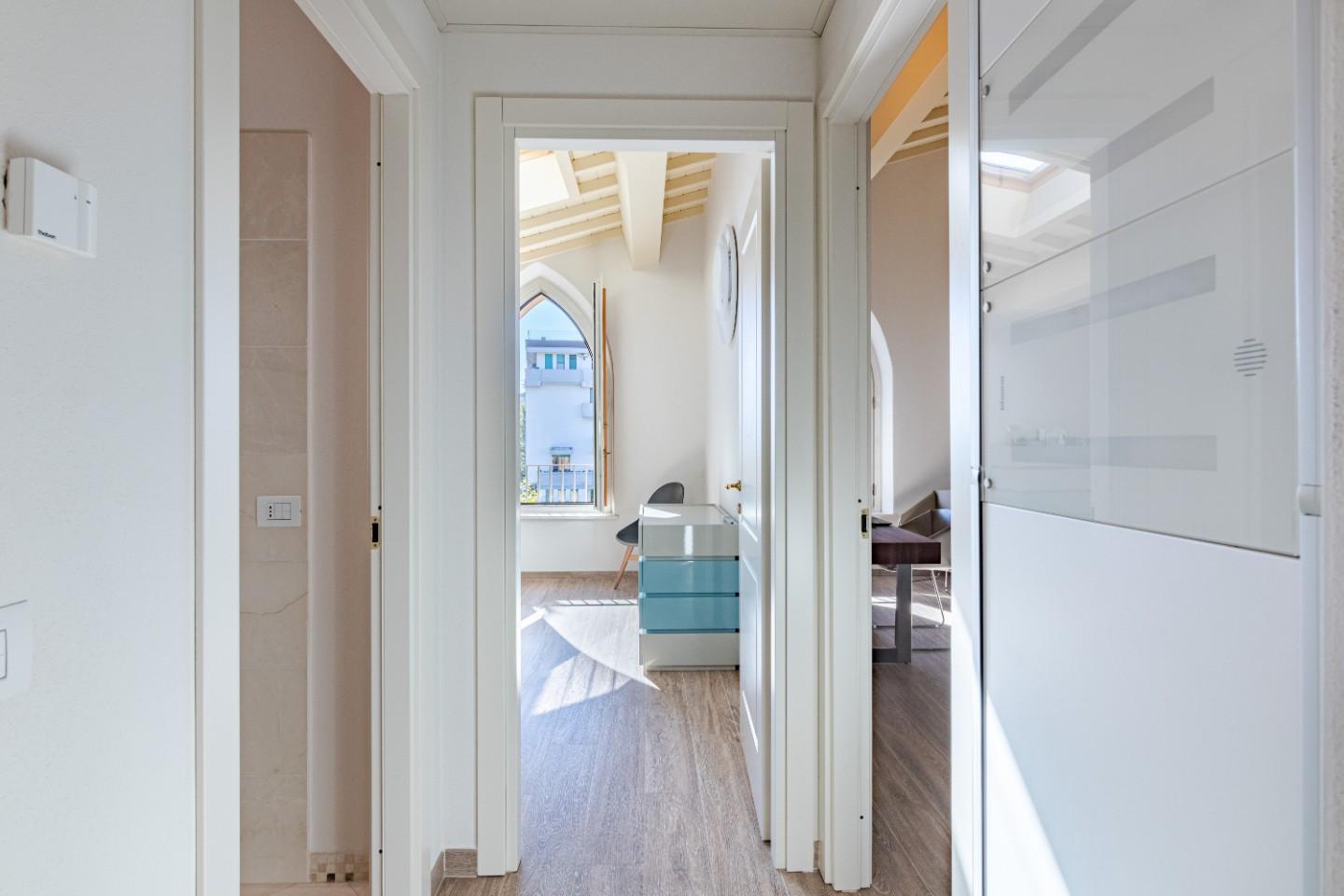 Punti di forza dellimmobile: Edificio recente con ascensore, facciate e parti comuni in perfetto stato, ultimo piano con numerose finestre e Velux, riscaldamento a pavimento e aria condizionata, impianti certificati e conformi alle normative vigenti, affacci piacevoli sul giardinetto di quartiere.