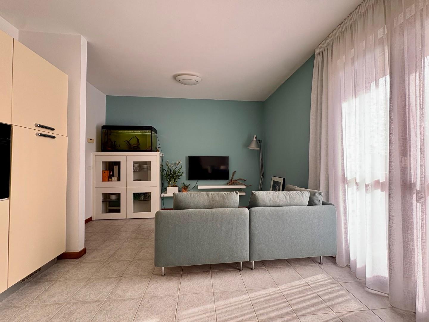 Limmobile, in condizioni impeccabili e pronto da abitare, si compone di: ingresso in zona living luminosa con angolo cottura e accesso al primo terrazzo disimpegno bagno finestrato con doccia camera matrimoniale con accesso al secondo terrazzo con vista sul verde Completa la proprietà un posto auto esclusivo.