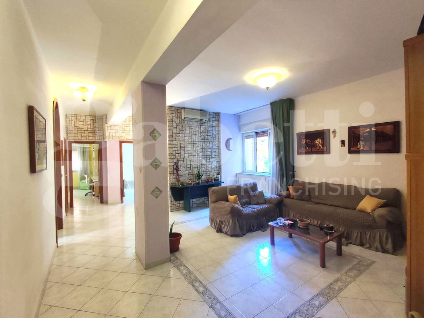Limmobile, si sviluppa per una superfice interna di circa 103 mq, composto da: ingresso su ampio soggiorno, cucina abitabile, 2 camere, servizio con vasca e comoda lavanderia con punto luce. Lappartamento, in discrete condizioni interne, munito di impianto di condizionamento CALDO/FREDDO ed infissi in PVC, posto al II piano in fabbricato munito di ascensore, gode di una tripla esposizione, servita da finestre e balconi alla romana.