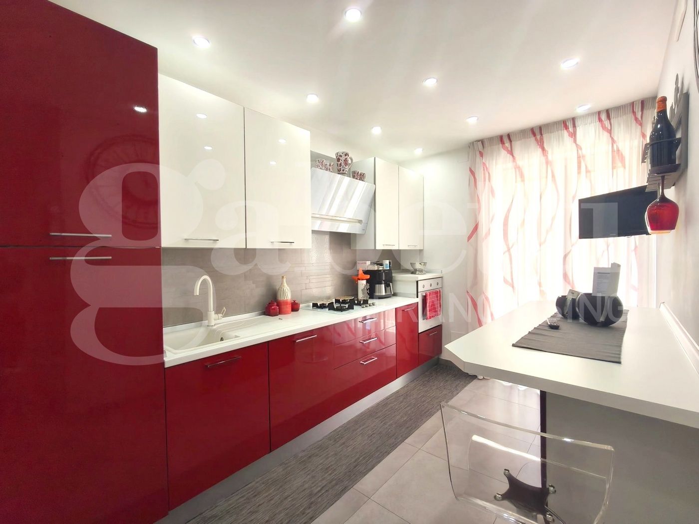 Limmobile si presenta come soluzione ideale per chi cerca unappartamento pronto da abitare, in contesto tranquillo ed in zona strategica, ben collegata ai principali servizi di zona, che verra lasciato, munito di: cucina completa di elettrodomestici (forno, lavastoviglie e frigorifero), parete attrezzata creata ed eseguita su misura, bagno completo di mobilio, comodi armadietti per esterni anchessi su misura, tende da sole e condizionatore.