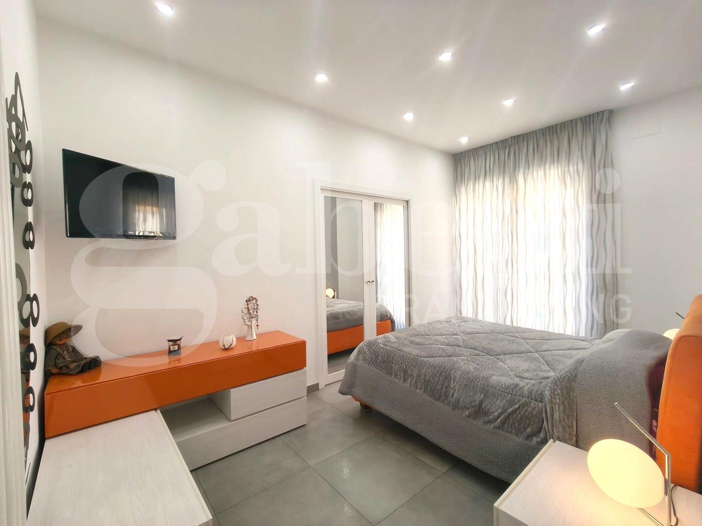 La recente ristrutturazione interna, eseguita con particolare attenzione ai dettagli al design e ai materiali di utilizzo, comprende: infissi doppio vetro camera, porte a scrigno, impianto di riscaldamento munito di termo arredi e di luci di emergenza, contro soffitte con faretti, porta dingresso blindata, piccoli e comodi armadi a muro e ripostiglio soppalcato, cabina armadio a scomparsa, impianto di condizionamento ed antifurto.