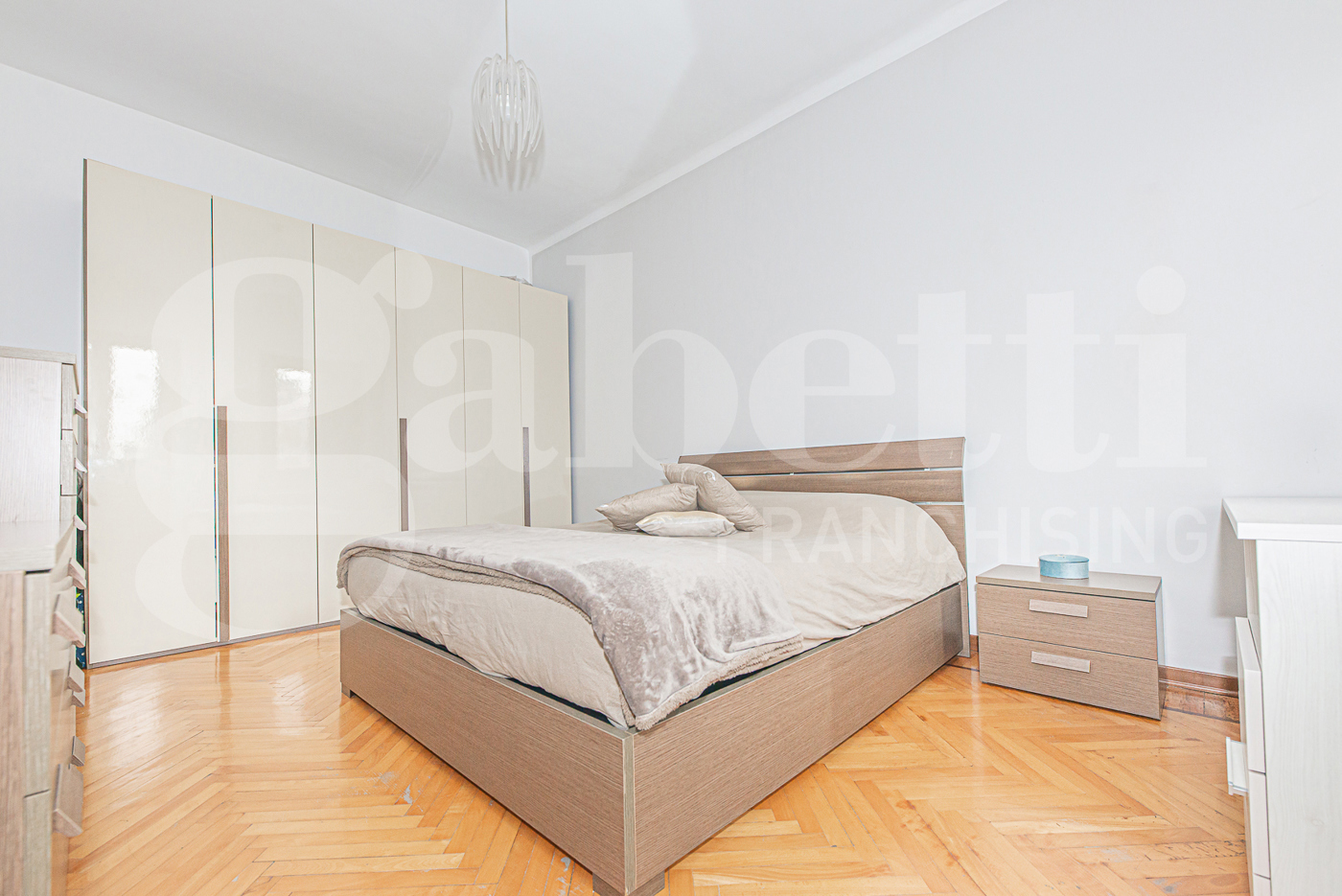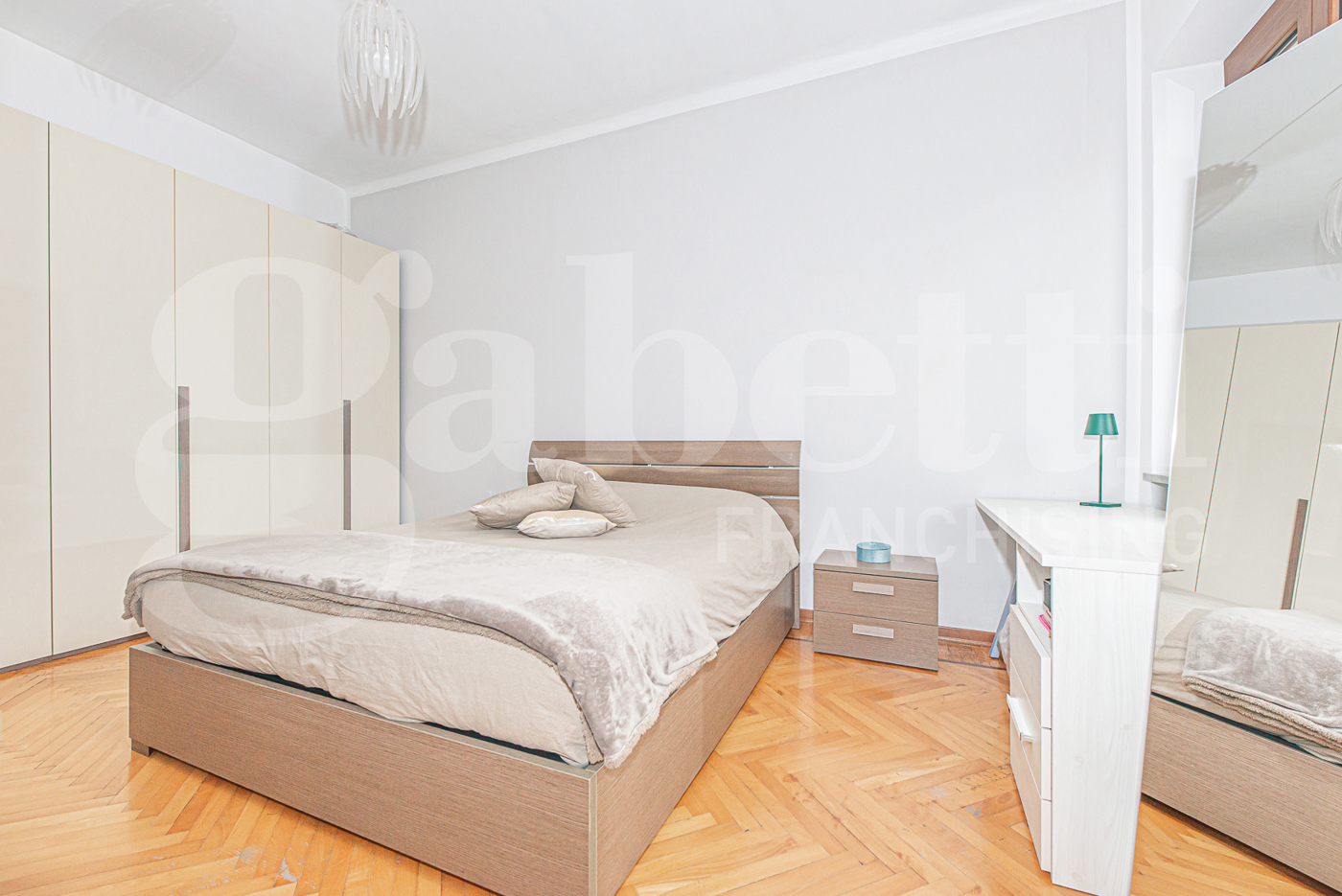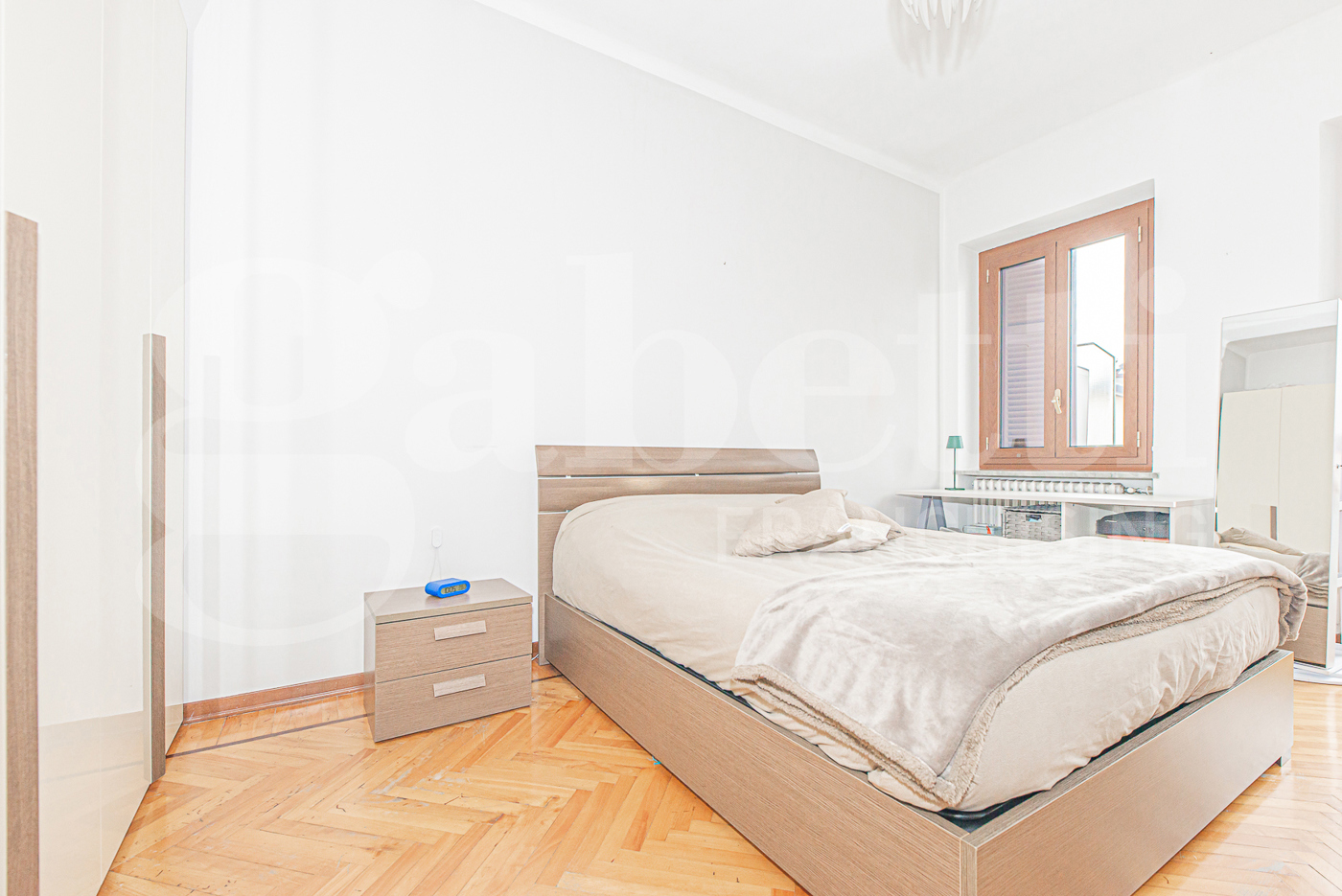 La zona notte si distingue per la sua eccellente gestione degli spazi: la camera da letto, rifinita in caldo parquet, vanta una metratura generosa che permette di inserire comodamente un armadio di grandi dimensioni, garantendo massima capienza senza sacrificare il comfort.