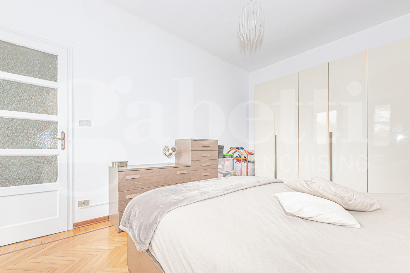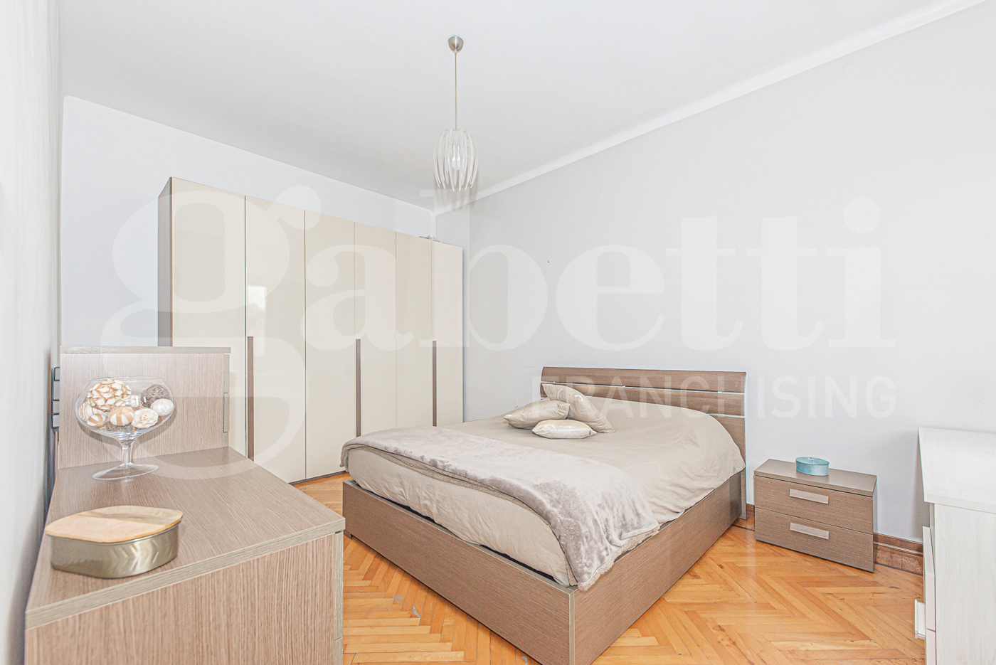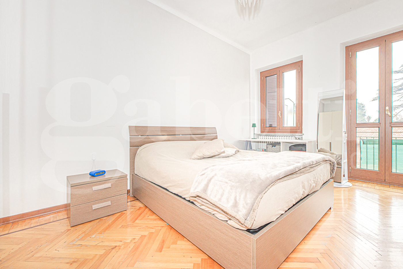 La zona notte si distingue per la sua eccellente gestione degli spazi: la camera da letto, rifinita in caldo parquet, vanta una metratura generosa che permette di inserire comodamente un armadio di grandi dimensioni, garantendo massima capienza senza sacrificare il comfort.