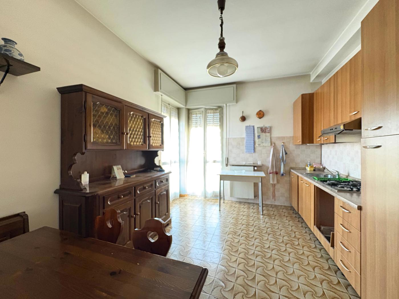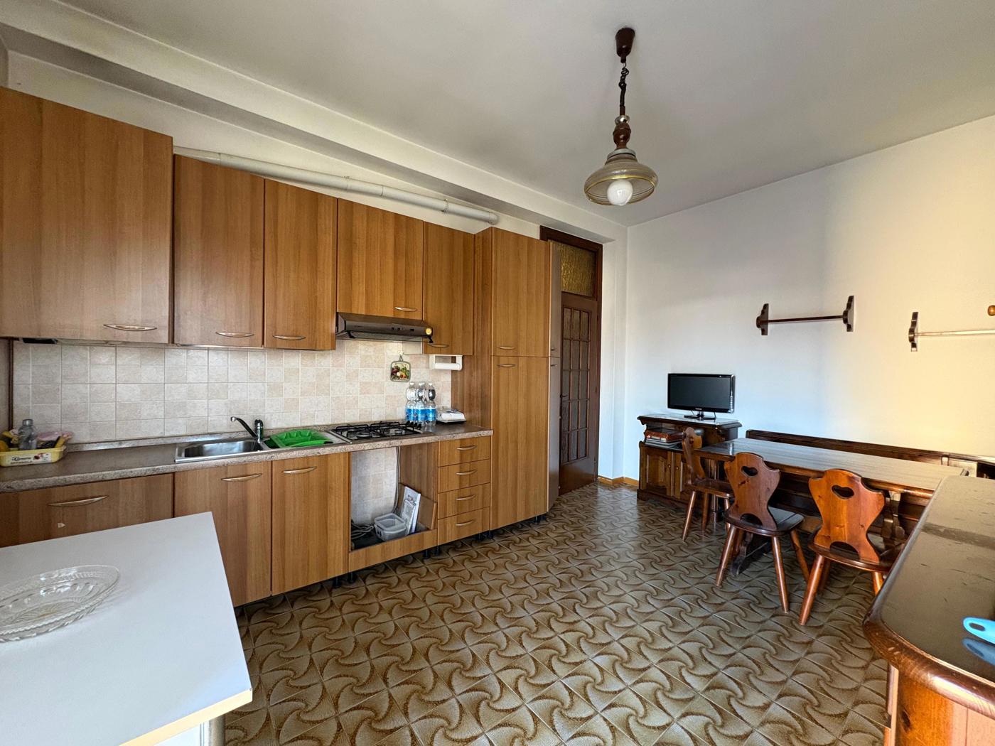 Lingresso conduce al soggiorno, affiancato da una cucina abitabile, ideale per la vita quotidiana.