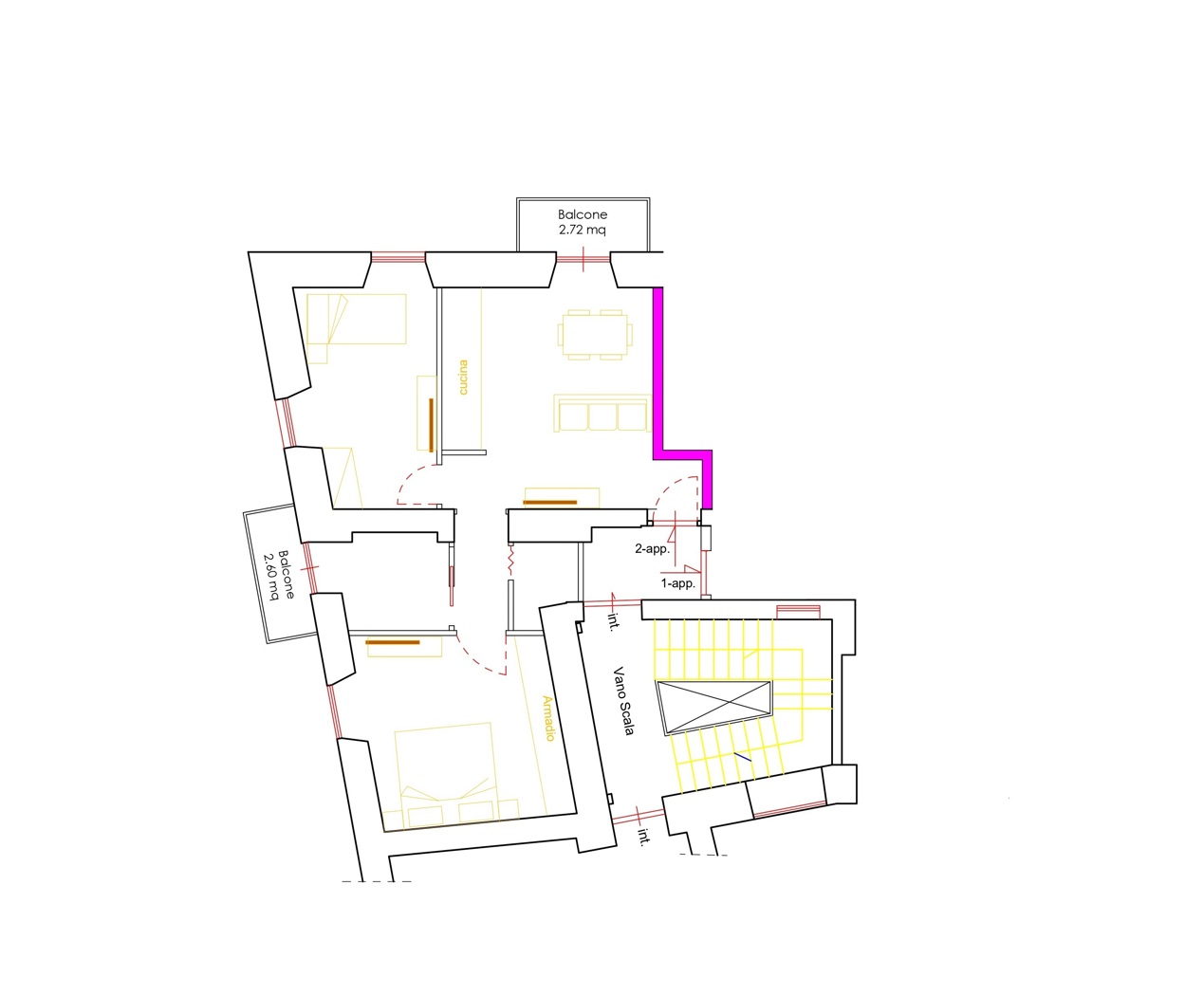 Oltrepassato il portone principale si ha accesso ad uno spazio comune che conduce allingresso della soluzione.