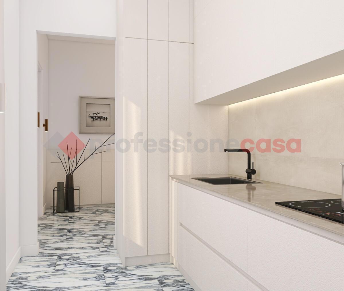 A completare la propriet, due balconi che regalano luce naturale e affacci aperti sulla citt. Le immagini pubblicate sono render fotorealistici del progetto di ristrutturazione: i materiali rappresentati corrispondono a quelli previsti dal capitolato, mentre il mobilio puramente illustrativo e non compreso nella vendita.