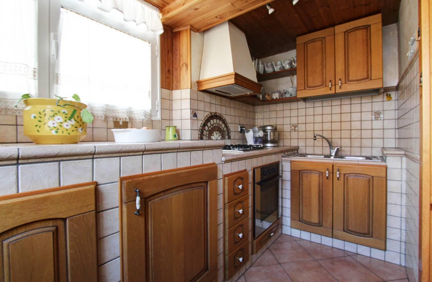 Il secondo piano ospita un soggiorno con angolo cottura e un terrazzo ideale per godersi momenti di relax.