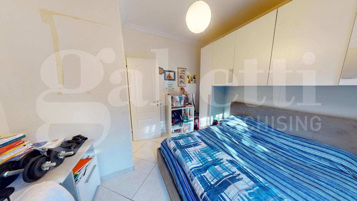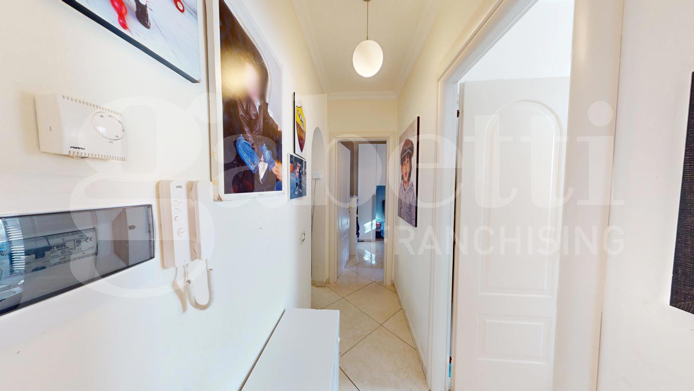 La soluzione si compone di un salone con angolo cottura, una camera da letto, una cameretta, disimpegno e bagno.