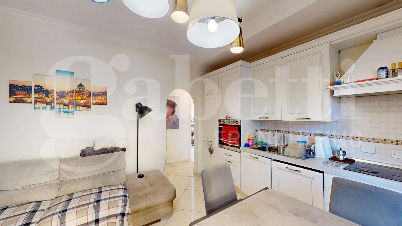 La soluzione si compone di un salone con angolo cottura, una camera da letto, una cameretta, disimpegno e bagno.