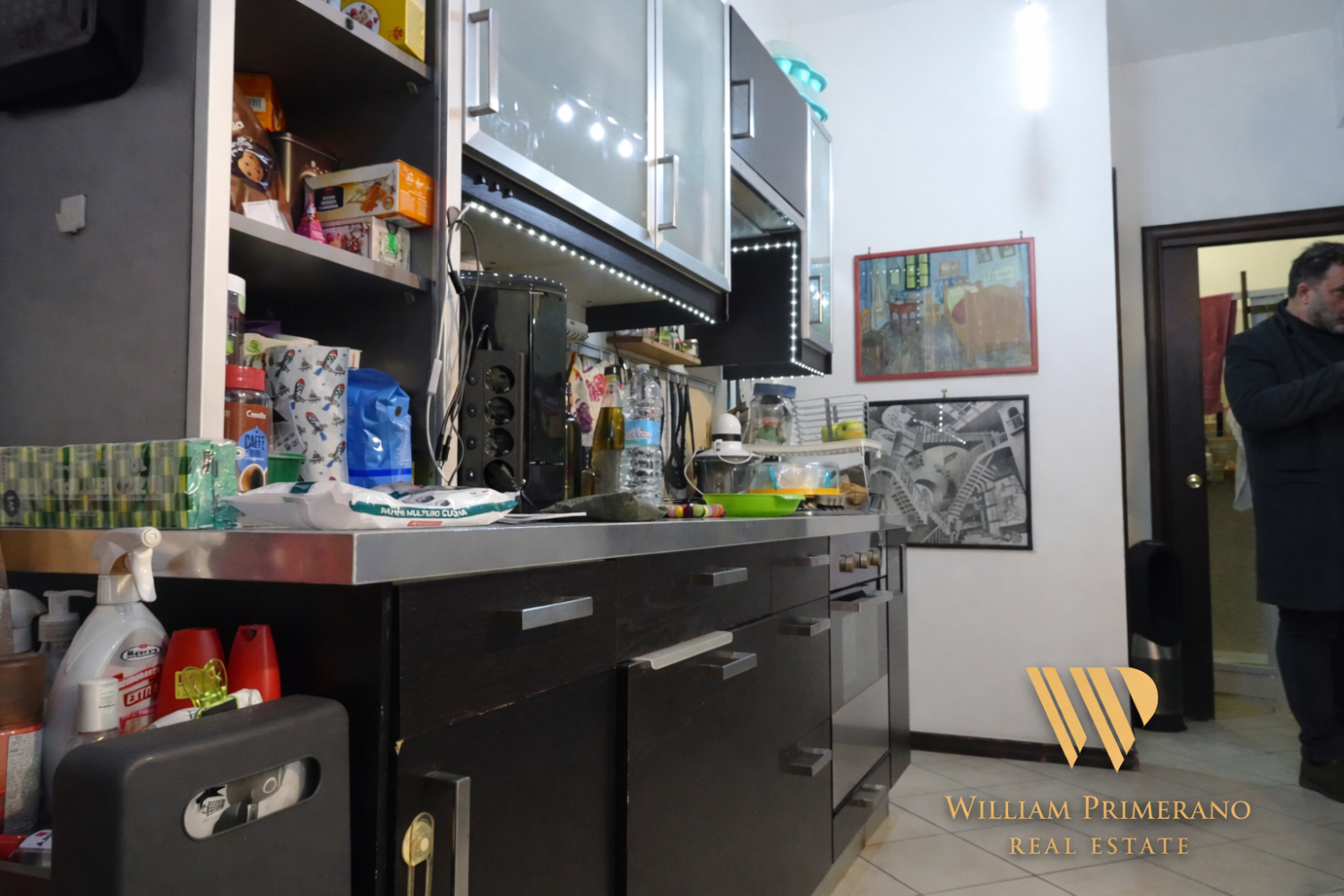 Lingresso si apre su unaccogliente zona giorno con soggiorno e angolo cottura a vista, un ambiente ben organizzato e ideale per la vita quotidiana e la convivialit.