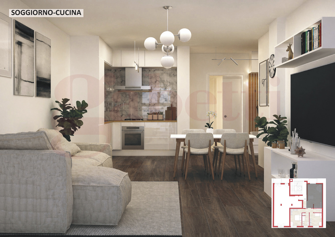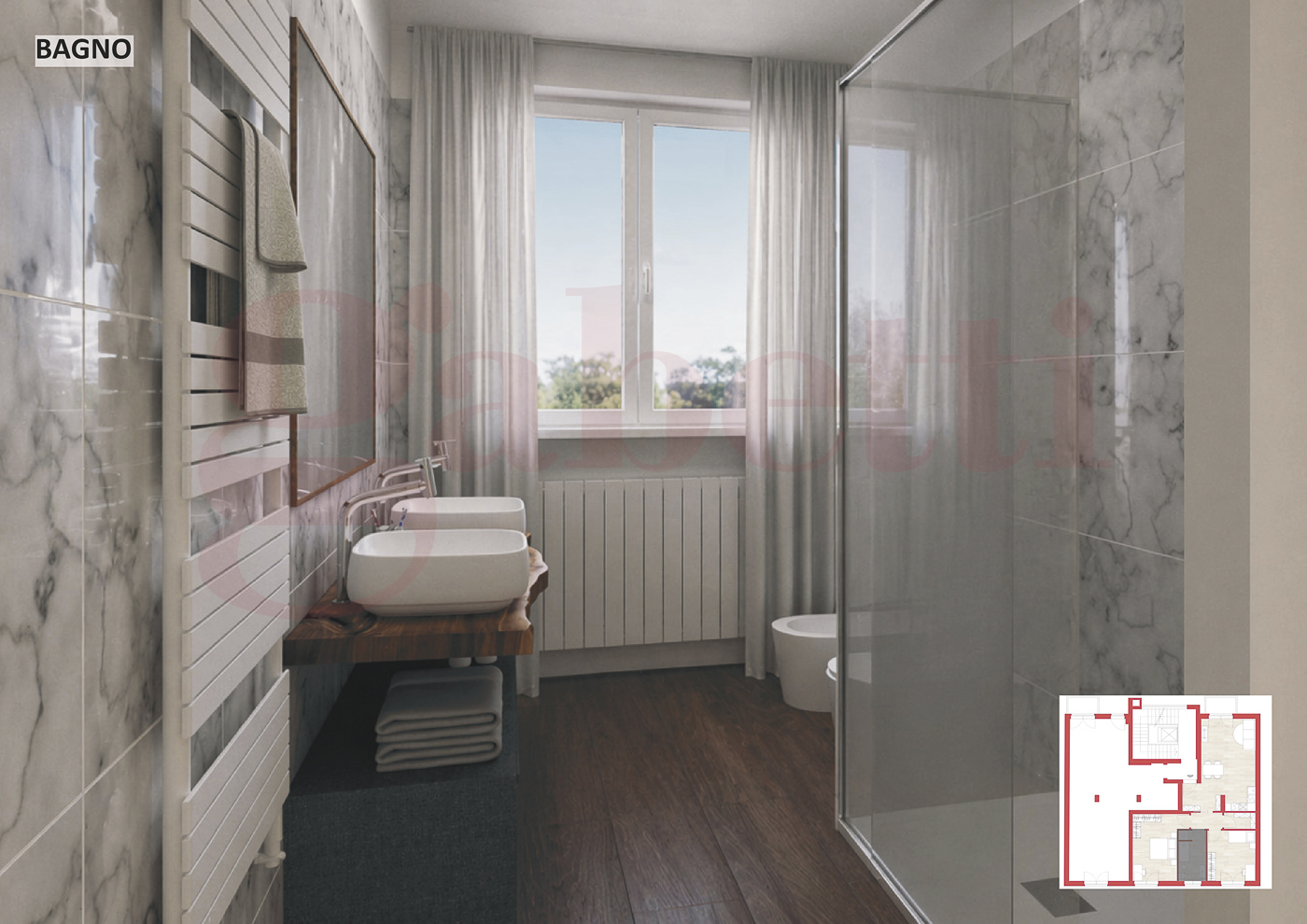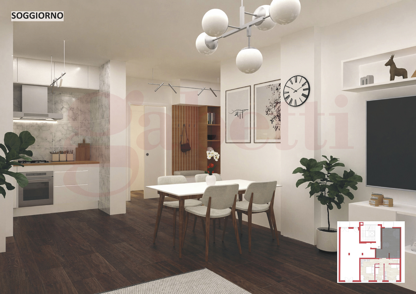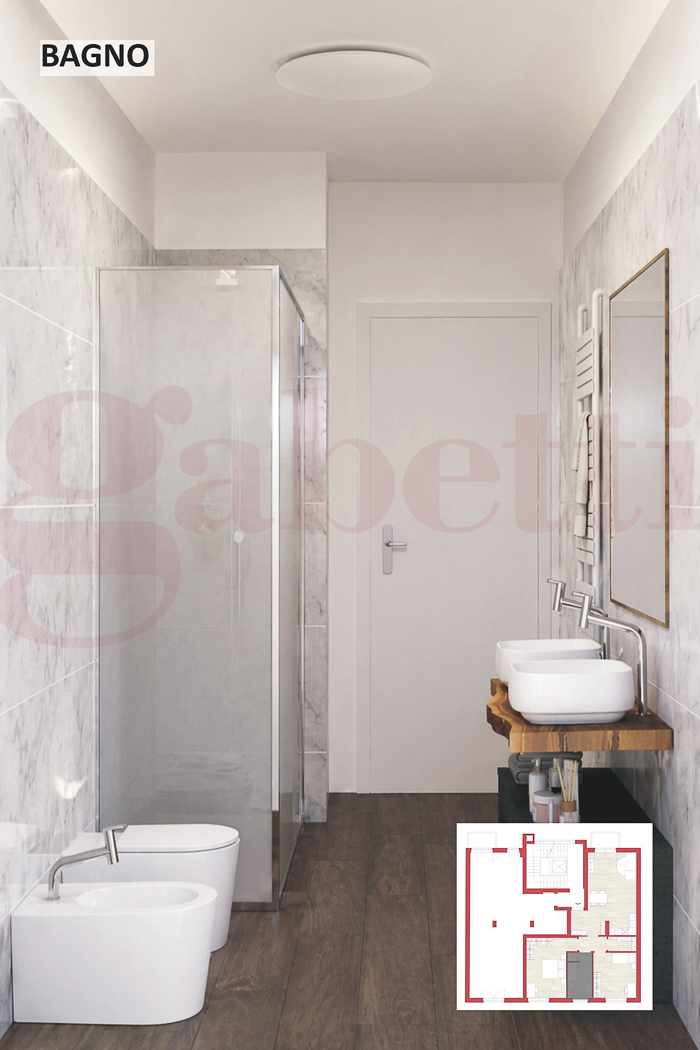 Le immagini presenti sono rendering che hanno il solo scopo illustrativo e non rappresentano lo stato di fatto n le finiture definitive: servono esclusivamente a fornire unidea di come la soluzione potrebbe risultare al termine della ristrutturazione, la quale potr comunque essere modificata ed adattata al gusto ed alle esigenze del cliente.