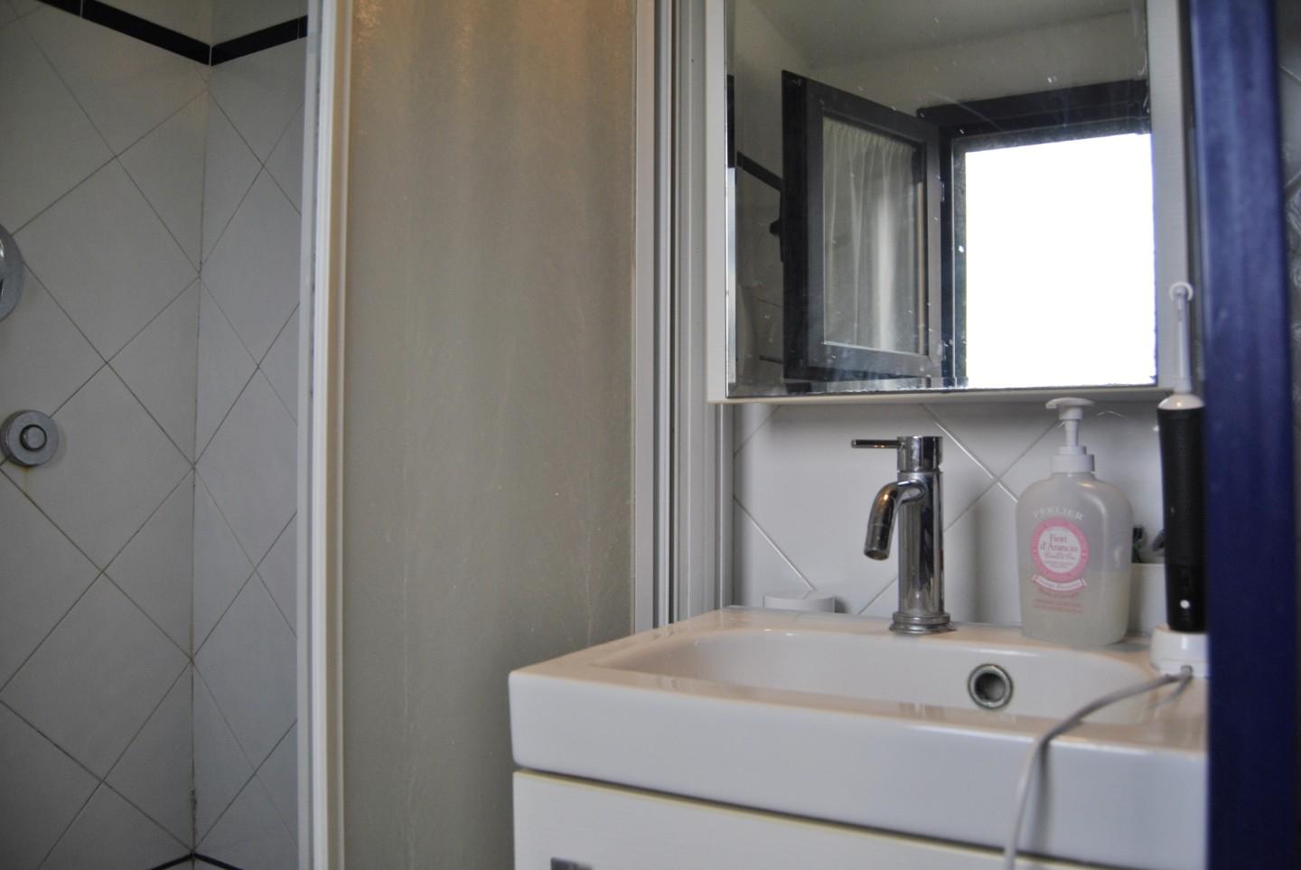 Gli spazi interni comprendono un soggiorno, una cucina con zona pranzo e una camera da letto matrimoniale, dotata di un bagno completo di doccia e finestra.