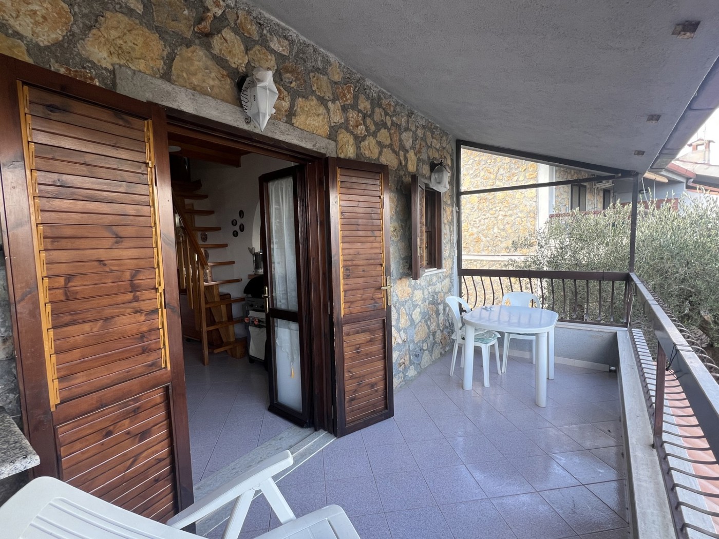 Il terrazzo con vista mare, la piccola corte pavimentata con box doccia, barbecue e i due posti auto assegnati completano le caratteristiche di questo immobile che lo rendono molto funzionale.