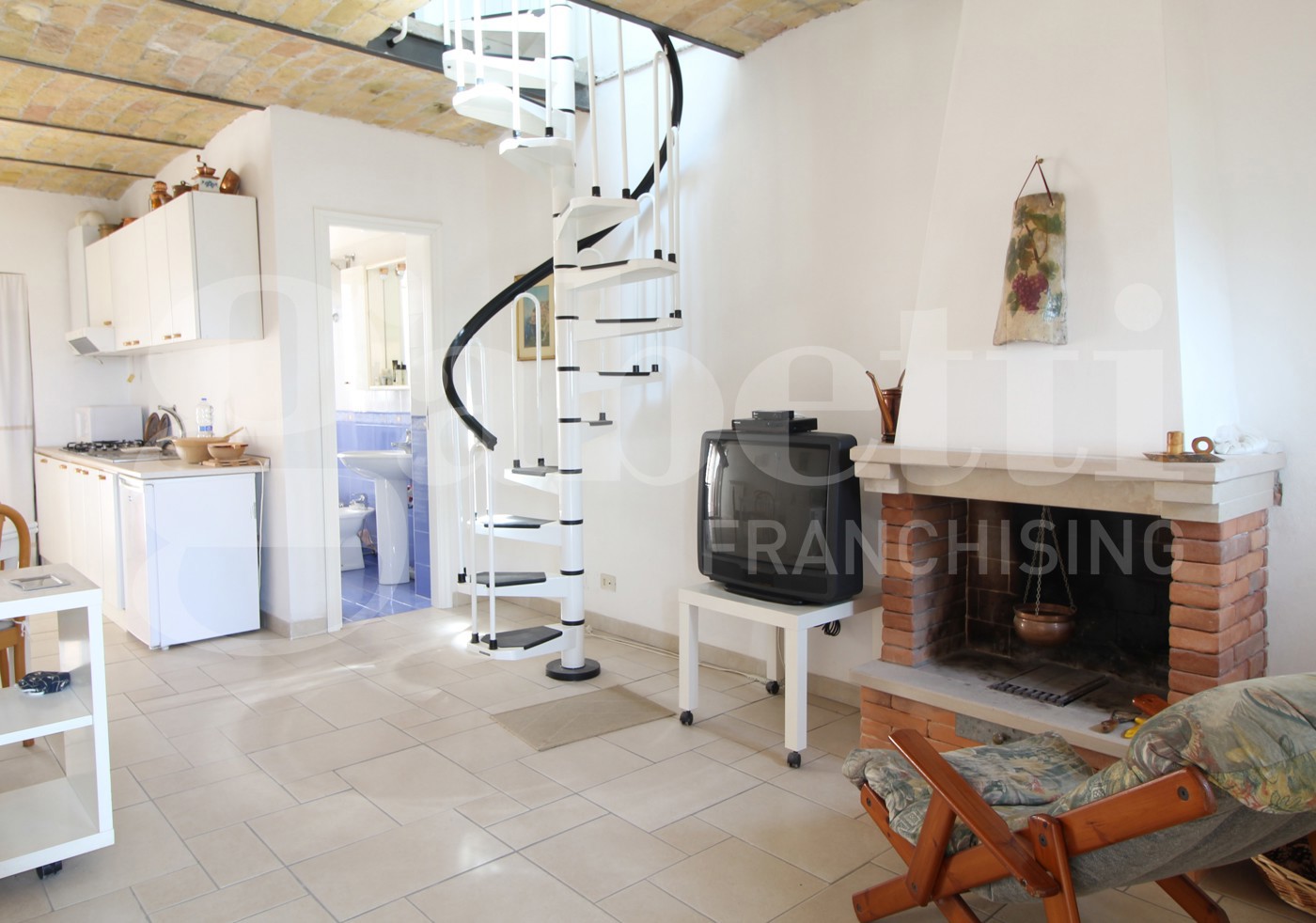 Con due livelli, offre spazi ben distribuiti e una camera da letto accogliente.