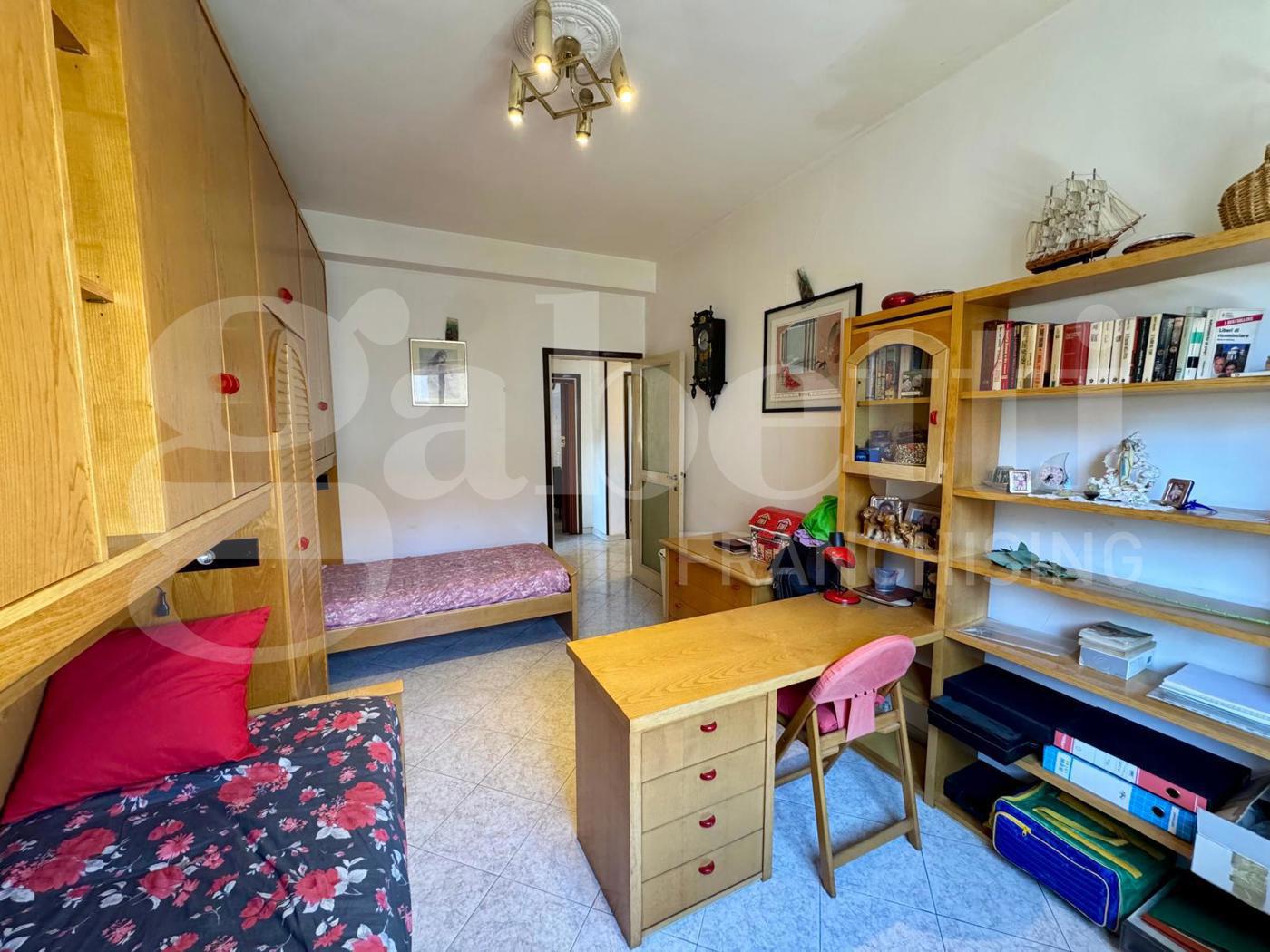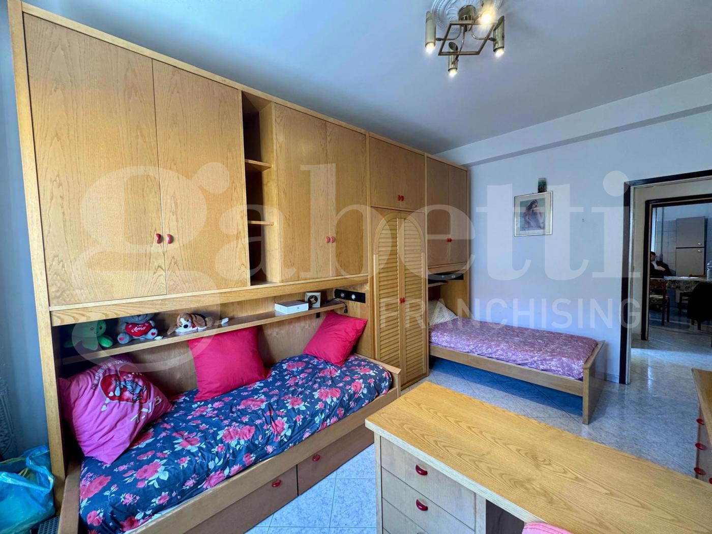 La zona notte offre due camere da letto di buona metratura, adatte sia a una famiglia che a chi necessita di uno studio o stanza aggiuntiva.