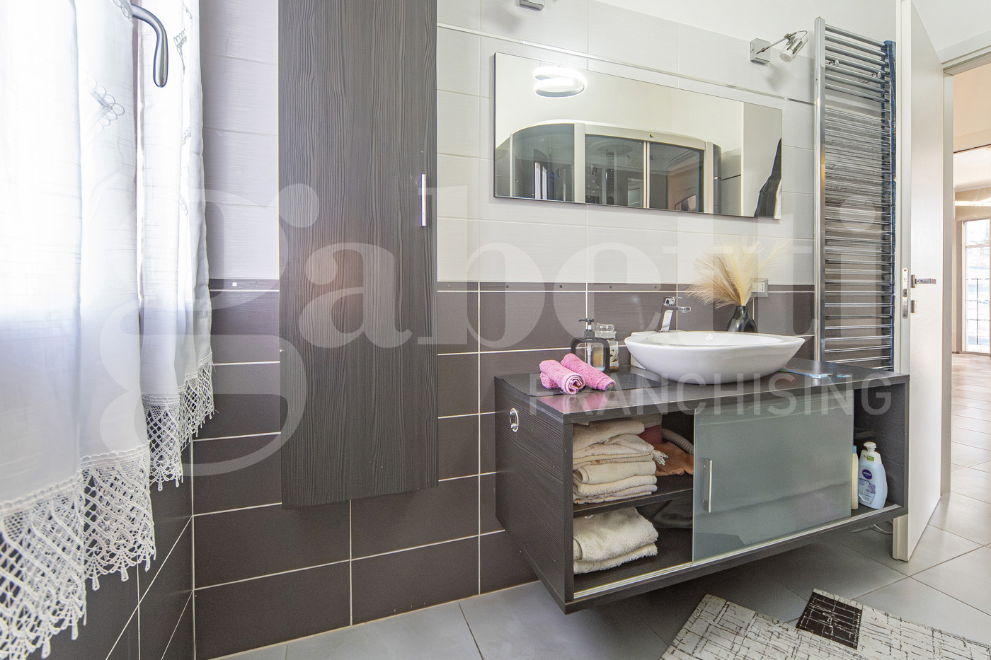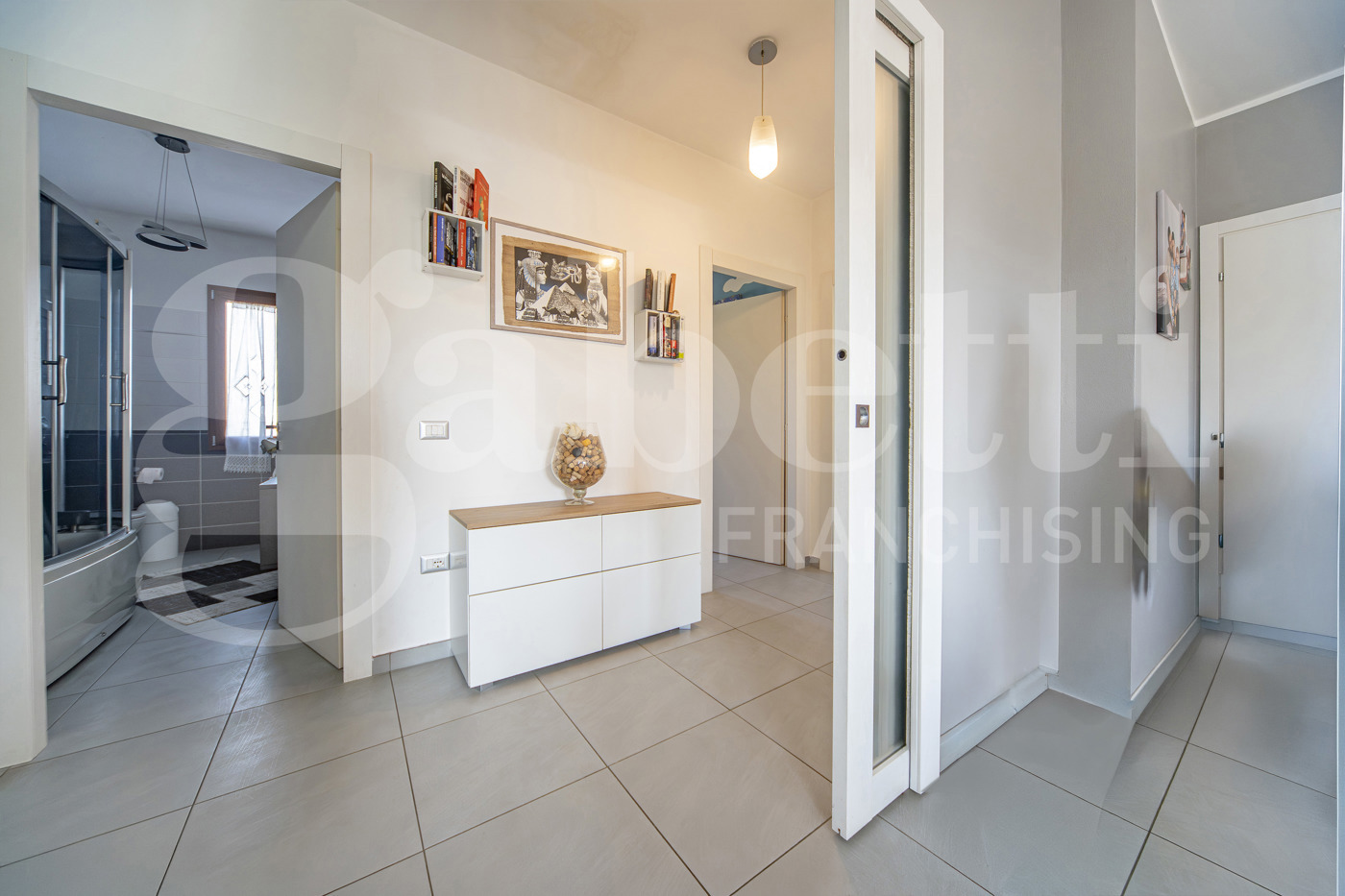 Una comoda scala interna, ci permette di accedere all' autorimessa circa 40Mq con basculante sita nel seminterrato e alla terrazza sovrastante l' appartamento.