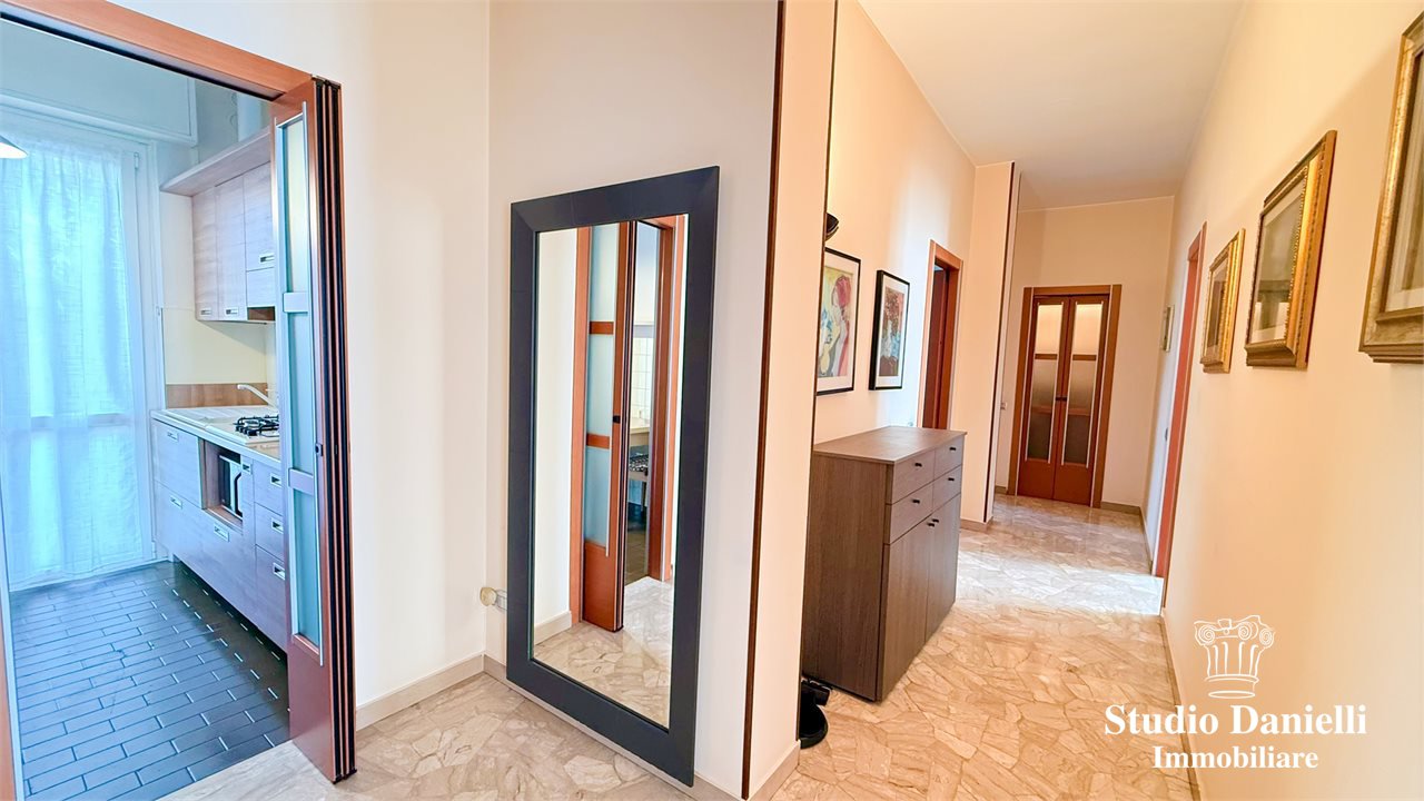 L'ingresso conduce alla spaziosa e luminosa zona giorno e alla cucina abitabile, separata e funzionale.