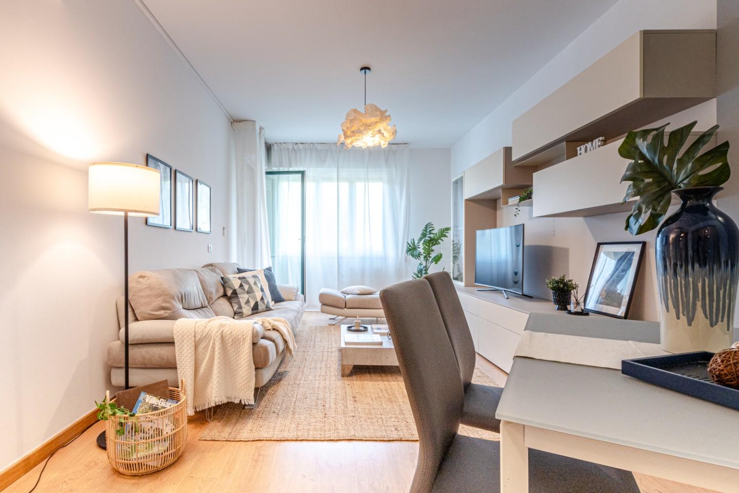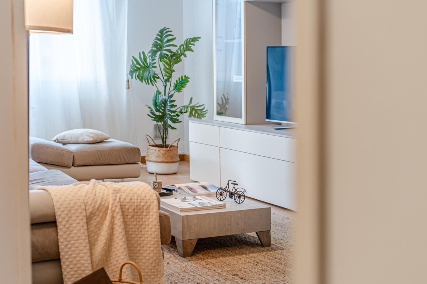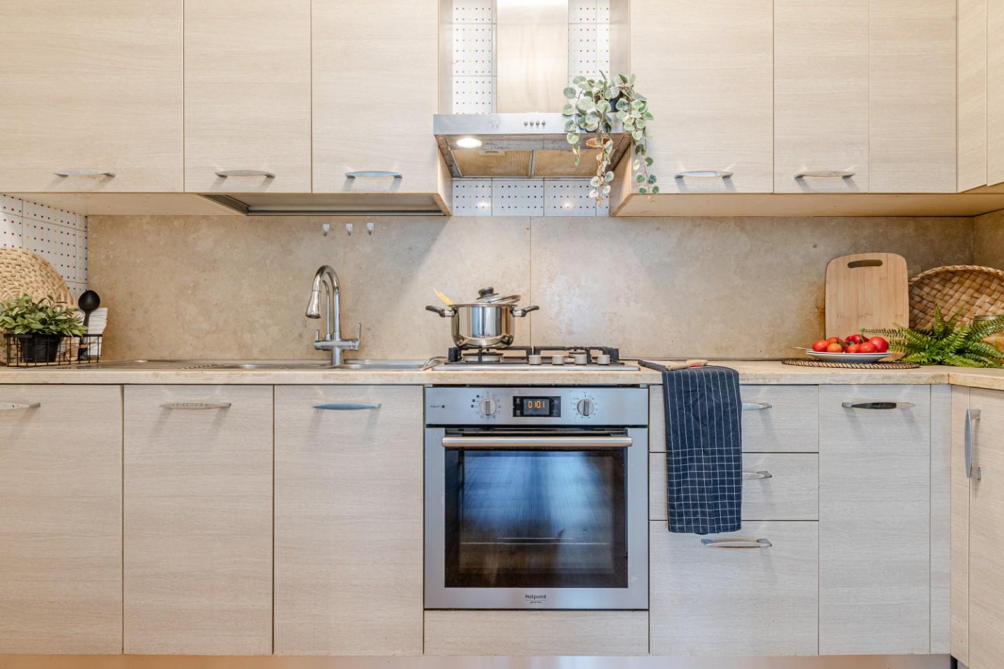 Alla tua destra si apre la zona giorno, luminosa e ben distribuita, dove il living dialoga con langolo cottura separato da una porta a vetri.