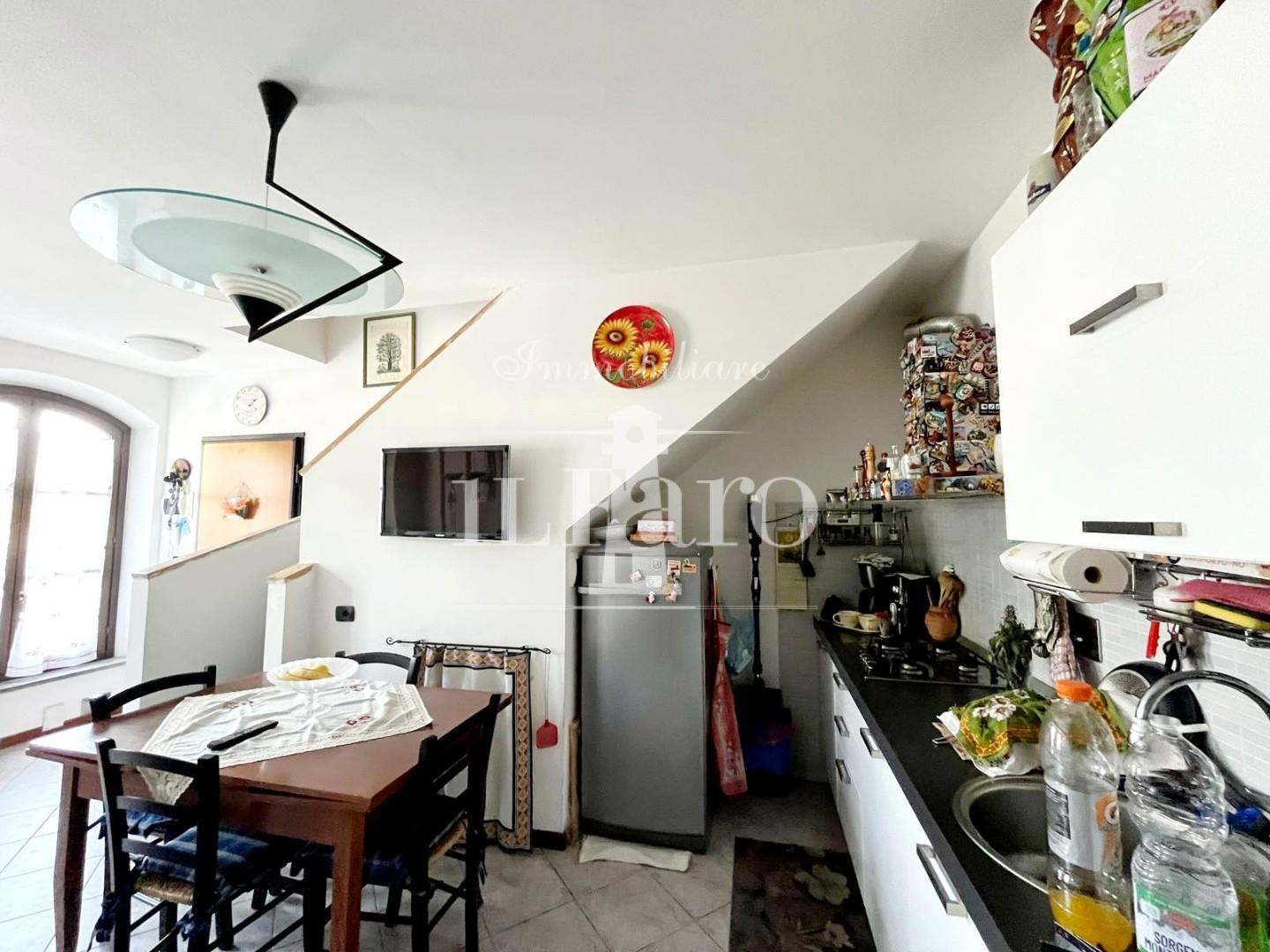 Entrando ci accoglie la zona giorno con angolo cottura, il bagno non finestrato, la camera da letto matrimoniale ed il balcone Al piano superiore accessibile da comode scale troviamo un ulteriore camera da letto con cabina armadio, un bagno finestrato e un ripostiglio pluriuso.