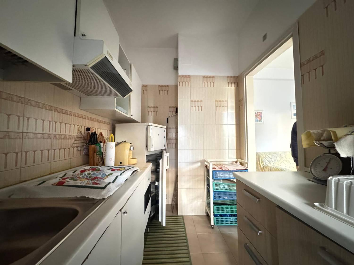 Internamente l'appartamento si presenta in buone condizioni ed composto da: ingresso su soggiorno, cucinotto, disimpegno, primo bagno con vasca, secondo bagno cieco di servizio, ripostiglio, camera matrimoniale e cameretta.