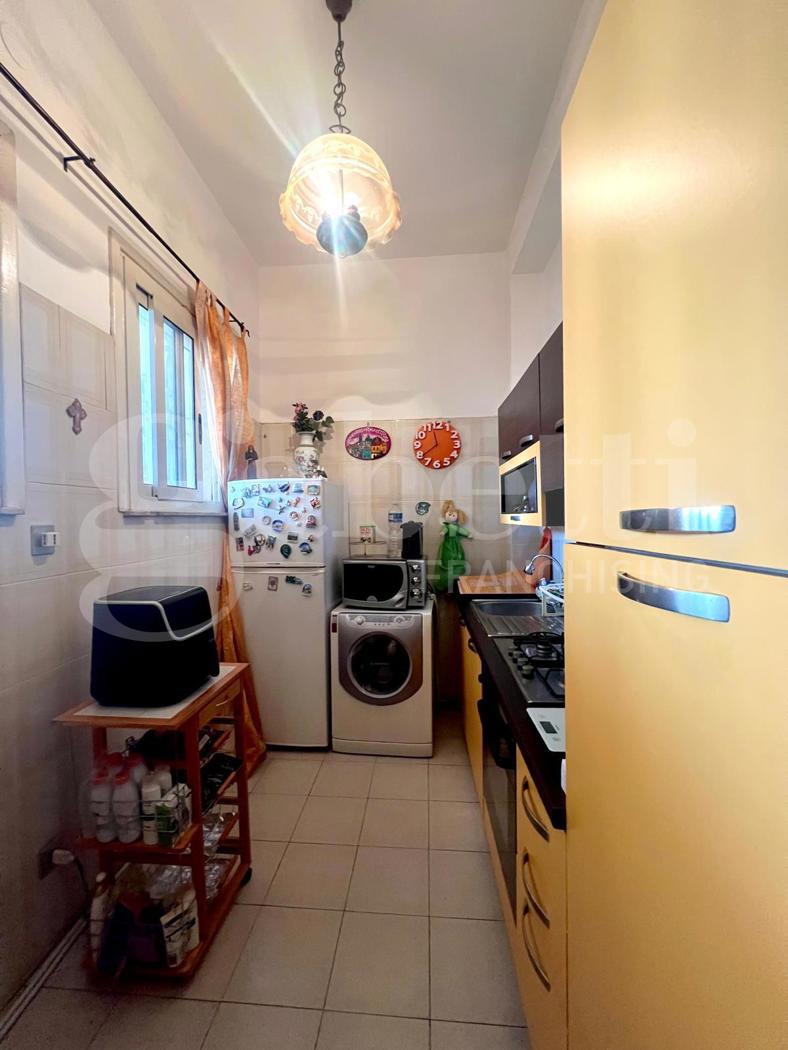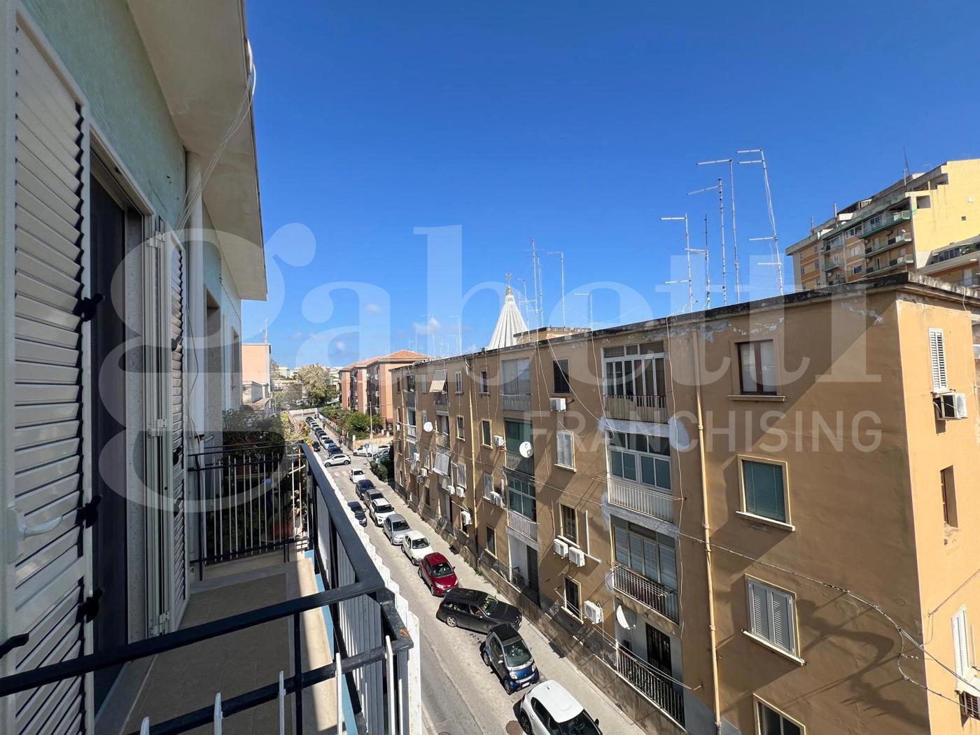 La casa, in buone condizioni e ben tenuta, ha tre vani con due balconi e misura 79 mq. Internamente, la casa ha ingresso sul comodo soggiorno con finestra (che disimpegna tutte le stanze della casa), funzionale cucina con finestre, spaziosa camera da letto matrimoniale con ben due porte finestra verso il balcone esclusivo, grande camera singola con balcone esclusivo, bagno con finestrella e doccia.