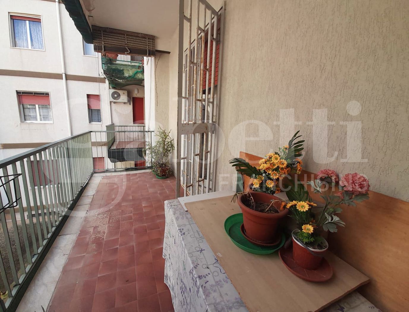 Lappartamento ha un comodo ingresso (che disimpegna il salone e il corridoio), comodo salone con balcone esclusivo, ripostiglio, cucina abitabile con accesso al secondo balcone, bagno principale con vasca e finestra, doppio servizio con lavanderia e accesso al secondo balcone, camera da letto matrimoniale con grande finestra, camera da letto singola con grande finestra.