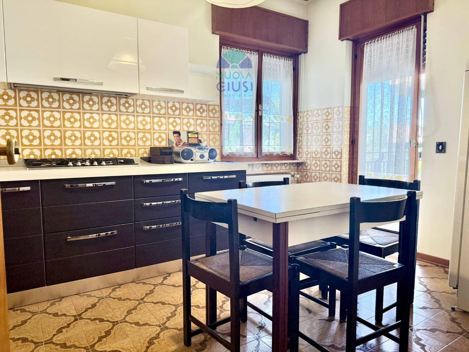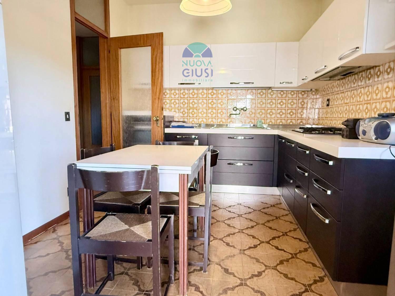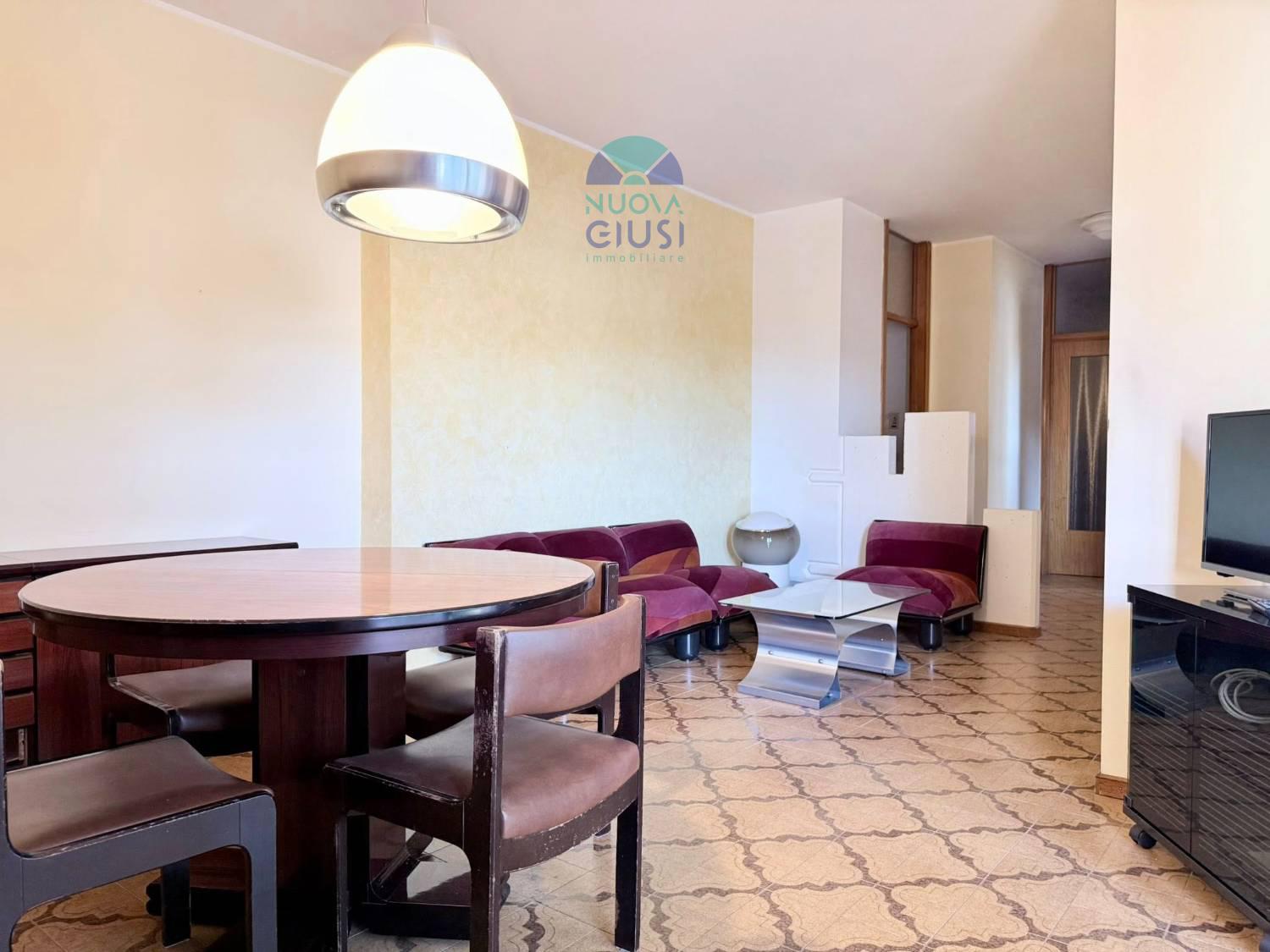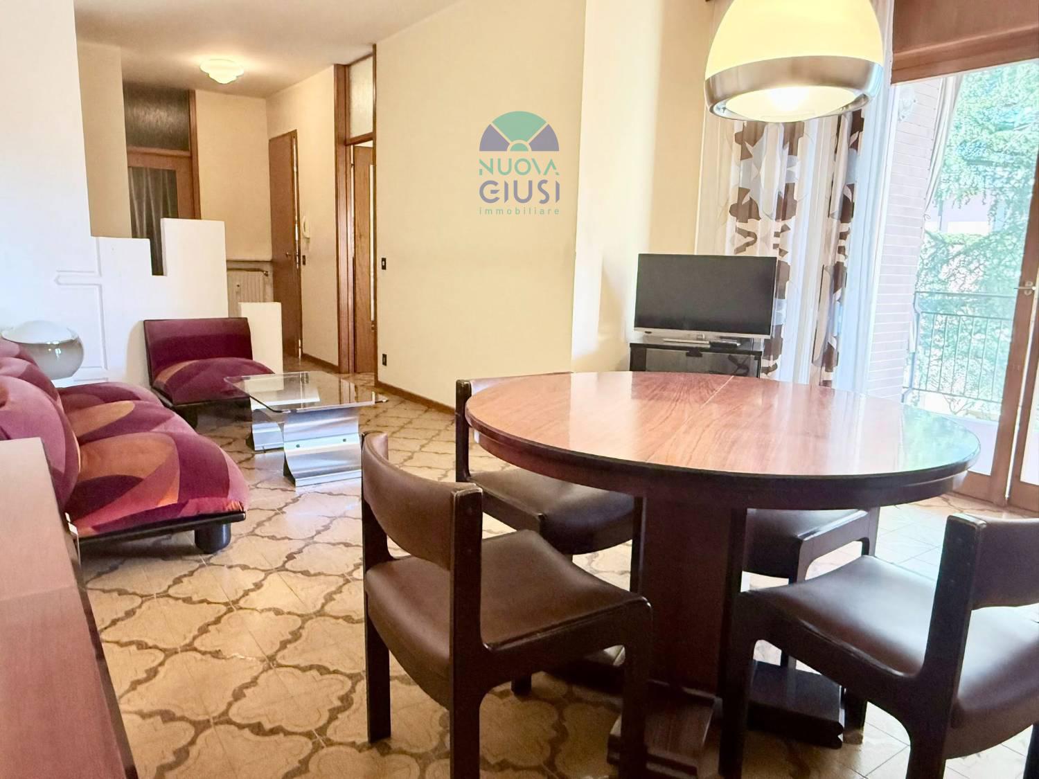 In zona tranquilla a due passi dal centro, perfetto e abitabile appartamento di quasi 100 metri, sito al secondo piano, composto da atrio, ampia zona giorno con cucina, sala pranzo e soggiorno, spaziosa terrazza, ripostiglio, disimpegno notte, due camere, bagno e garage.