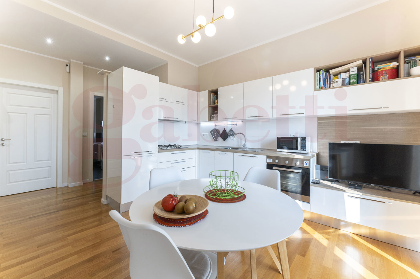 La soluzione viene inoltre ceduta con parte degli arredi come la cucina e alcune armadiature su misura.
