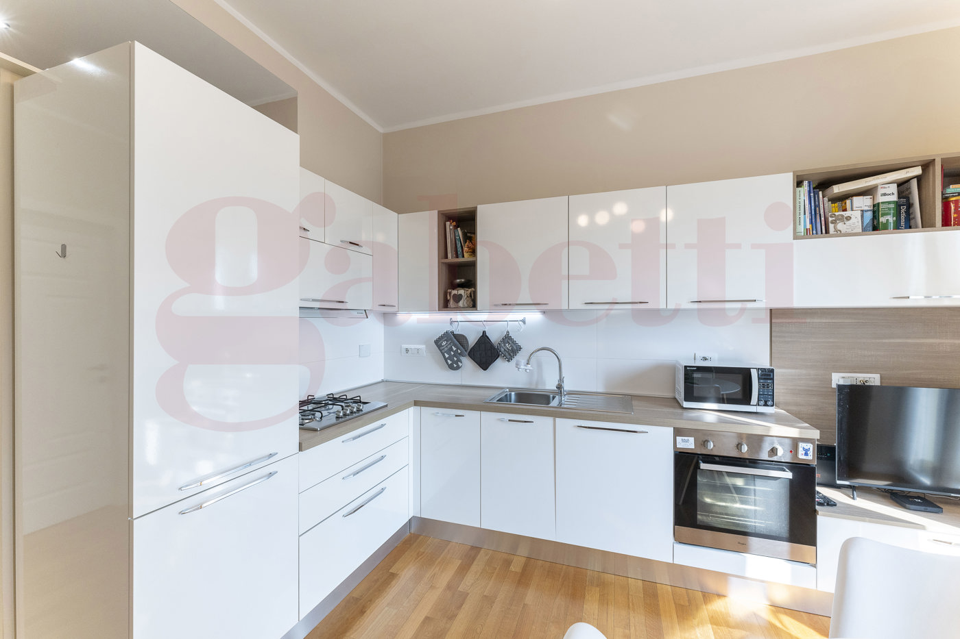 La soluzione viene inoltre ceduta con parte degli arredi come la cucina e alcune armadiature su misura.