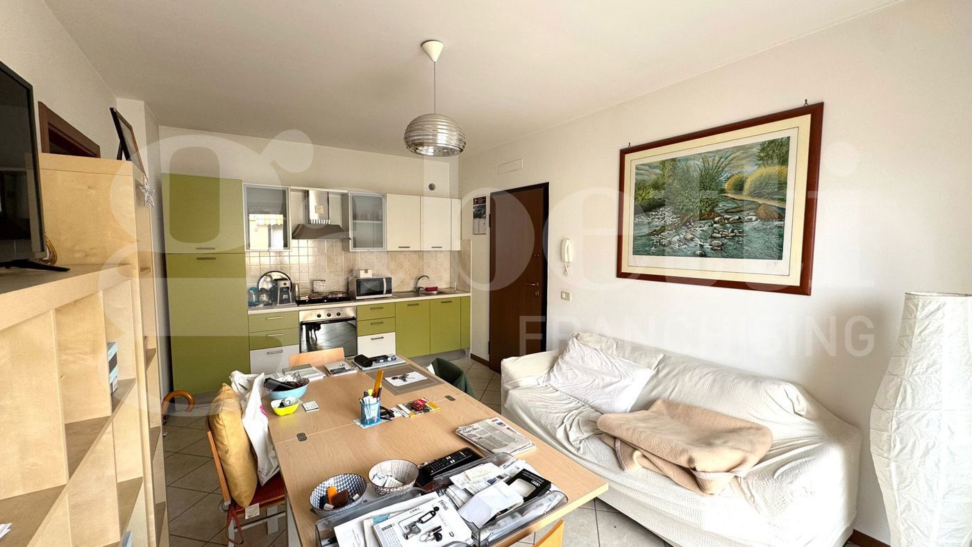 La cucina a vista e il soggiorno living creano un ambiente conviviale e accogliente, perfetto per trascorrere piacevoli momenti in famiglia o con amici.