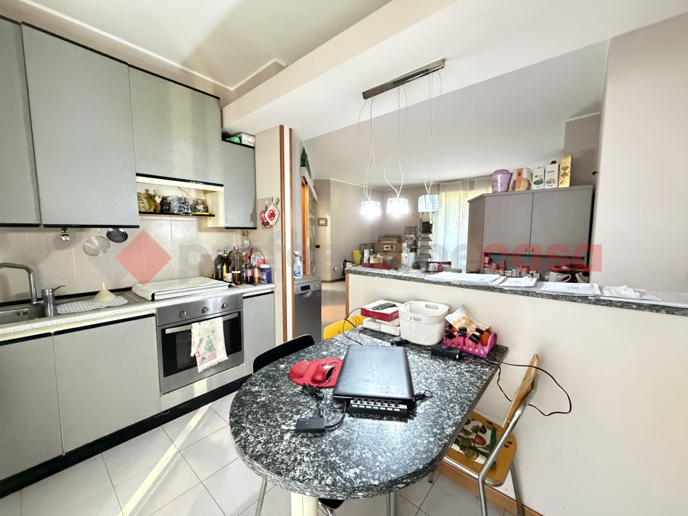Contesto posto in zona tranquilla a pochi passi da tutti i principali servizi, immobile ubicato al terzo piano di un condominio con ascensore e verde condominiale, internamente ben suddiviso e composto da: Ingresso diretto nella zona giorno con balcone esposto a Ovest, cucina sul lato opposto con ulteriore balcone esposto a Est, disimpegno notte con camera matrimoniale, bagno, ulteriore zona notte opposta con cameretta e secondo bagno, completa la soluzione la cantina posta al piano terreno e il box auto compreso nel prezzo.