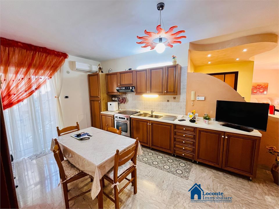 L'ingresso accogliente conduce a un soggiorno luminoso con cucina abitabile, creando un ambiente conviviale e funzionale.