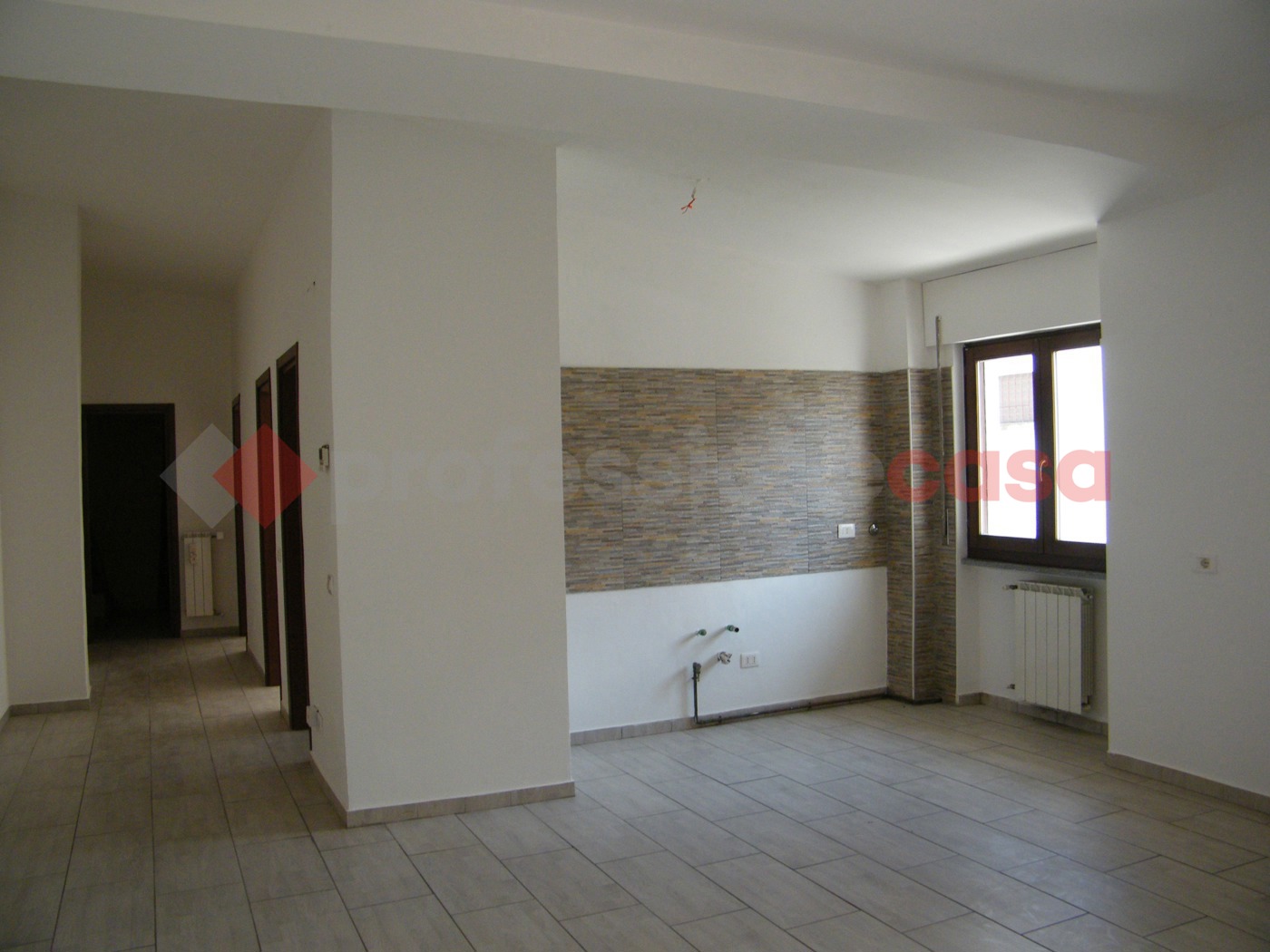 E' composto da ingresso, soggiorno con cucina a vista, due camere, bagno, ampio ripostiglio, tre balconi di mq. 8; completa la propriet il garage di circa mq. 15 al piano seminterrato.