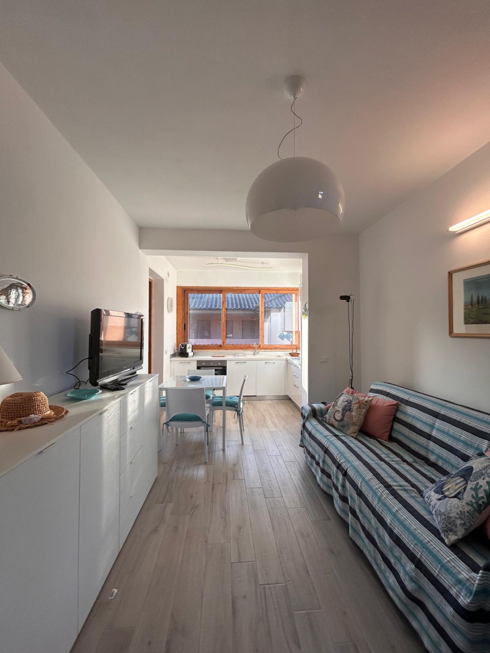 Salendo al primo ed ultimo piano, si viene accolti da un soggiorno luminoso con angolo cottura, un ambiente raccolto e accogliente che si apre verso l'esterno.