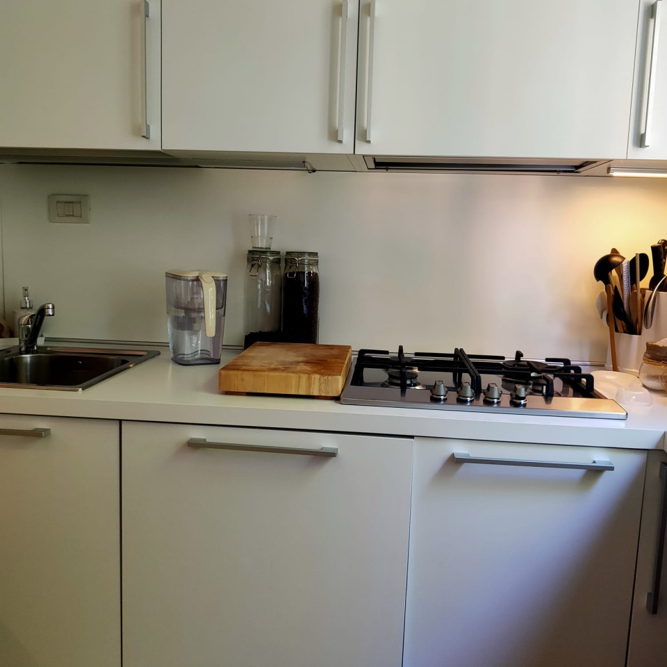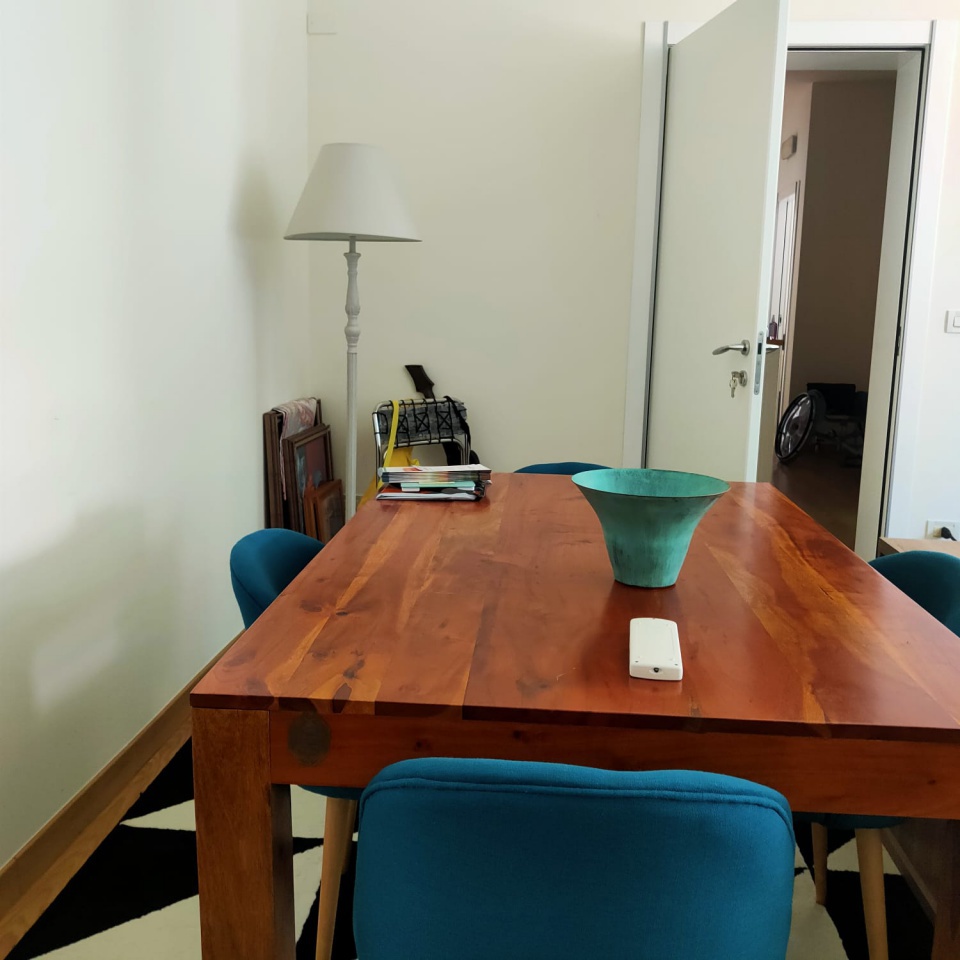 Appartamento completamente ristrutturato e con finiture di pregio composto da ingresso al piano rialzato, scala di accesso al piano abitativo ed ascensore, grande e luminosissimo salone, cucina semiabitabile, studio, bagno e grande camera da letto.