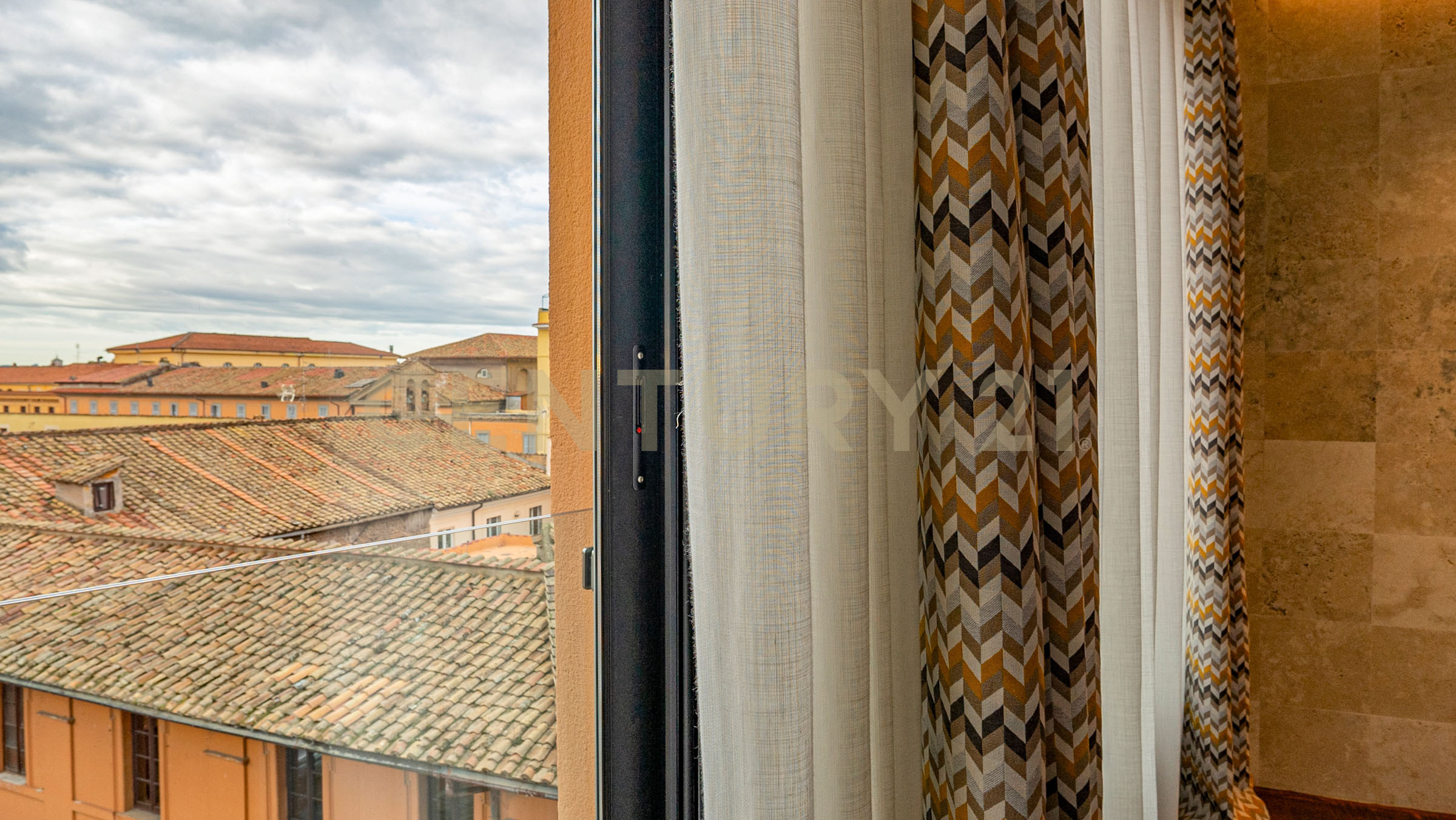 Completa la proprietà un box auto e una cantina, elementi rari e di grande valore per la zona. Lappartamento si distingue per la sua eccezionale luminosità, garantita dalle finestre a tutta altezza, e per la vista strepitosa sui tetti di Roma, che accompagna gli ambienti principali.