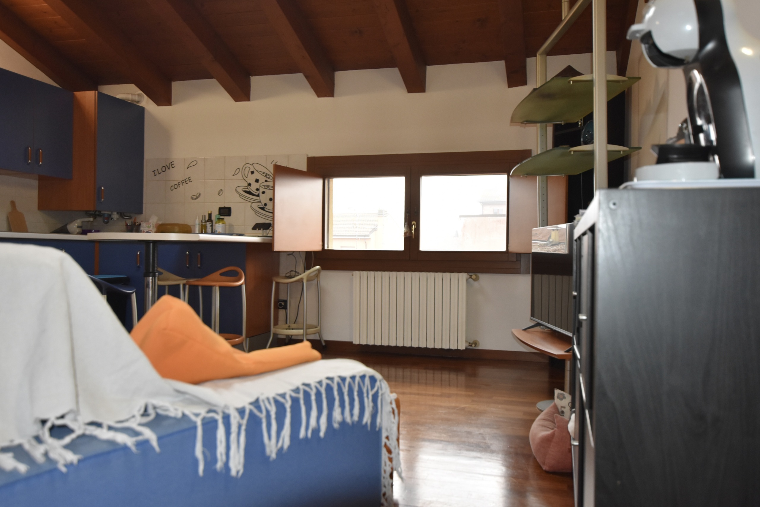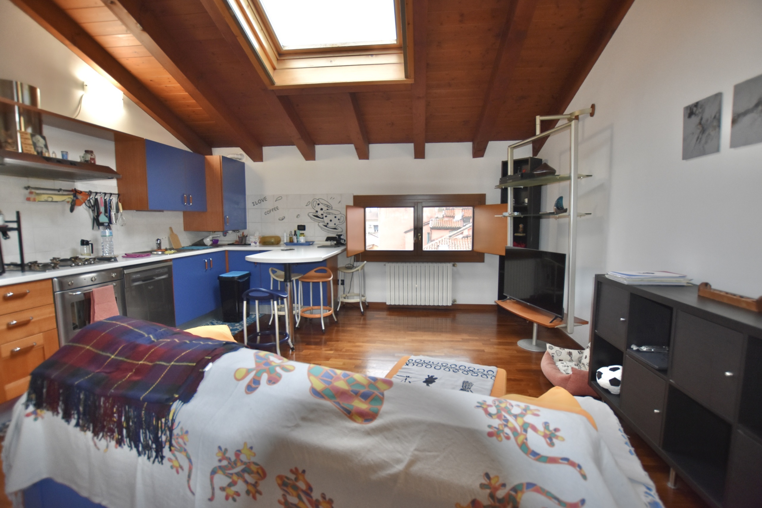 L'immobile è caratterizzato dalla presenza del pavimento in parquet e del tetto in legno a vista, che donano calore a tutti gli ambienti, dotato di grandi lucernai per una ottima illuminazione, composto di ingresso su ampia zono giorno con cucina a vista, un disimpegno arredabile, 2 comode camere da letto e un bagno spazioso.
