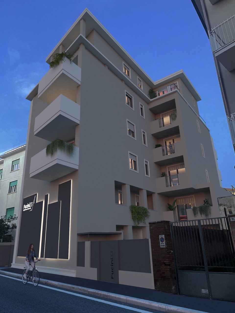 IL PROGETTO FUCINI33 Fucini33 nasce come intervento di rigenerazione urbana e riqualificazione completa di un edificio composto complessivamente da 15 appartamenti sviluppati su sei piani oltre al piano interrato con posti auto privati e cantine, con l'obiettivo di offrire abitazioni moderne all'interno di un contesto urbano consolidato.