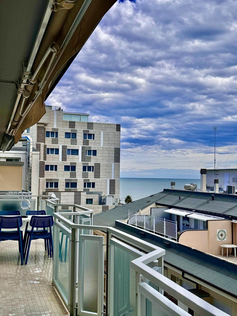 Posto al quinto piano, in seconda linea, rispetto alla spiaggia che dista 100m, gode della vista del mare e anche delle colline.