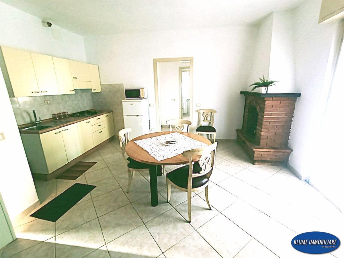 L'appartamento si presenta in buone condizioni di manutenzione e si compone di un ampio soggiorno/pranzo con caminetto e cucina a vista, accesso a balcone sul fronte, disimpegno notte, una camera matrimoniale ed una cameretta entrambe con accesso ad altro balcone, un bagno con finestra.